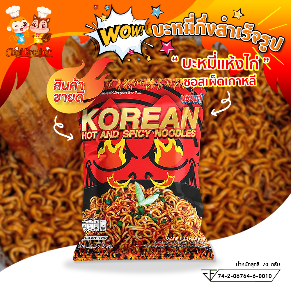 NEW! wow บะหมี่แห้งไก่เผ็ดสำเร็จรูปอบแห้ง