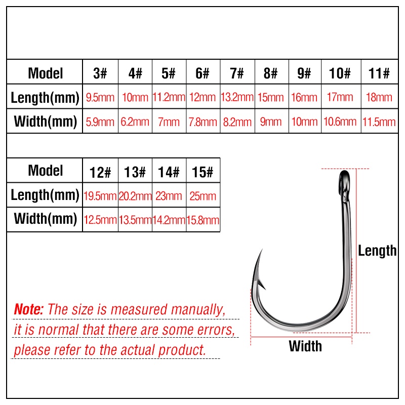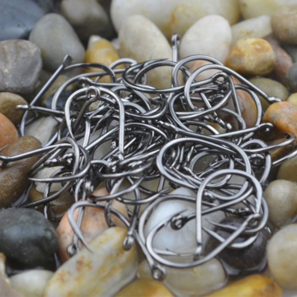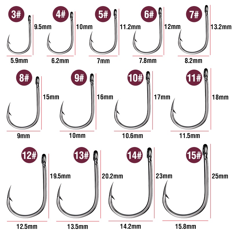เบ็ดตกปลา 100 ชิ้นที่มีขนาดแตกต่างกันตั้งแต่ 3# 12 ถึง 12#.มีความคมและทนทานเป็นพิเศษทำจากเหล็กกล้าคาร์บอนคุณภาพสูง