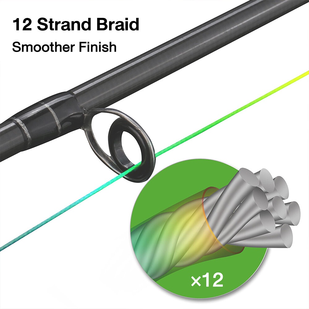 กระบวนการทอที่บางเฉียบและแม่นยำ: การทอที่แม่นยำและเส้นใยคุณภาพสูง: 15-25LB ทำจากเส้นใยที่แข็งแรง 12 เส้นเพื่อพลังที่มากขึ้น โปรไฟล์ที่เล็กลงส่งผลให้การหล่อดีขึ้น ซึ่งทำให้การผูกปมง่ายขึ้นและมีความแข็งแรงมากขึ้น บางพอที่จะตัดผ่านน้ำได้เร็วขึ้น ช่วยให้เหยื่อของคุณไปถึงชั้นน้ำเป้าหมายได้เร็วกว่าที่เคย ไม่มีการหดตัว
