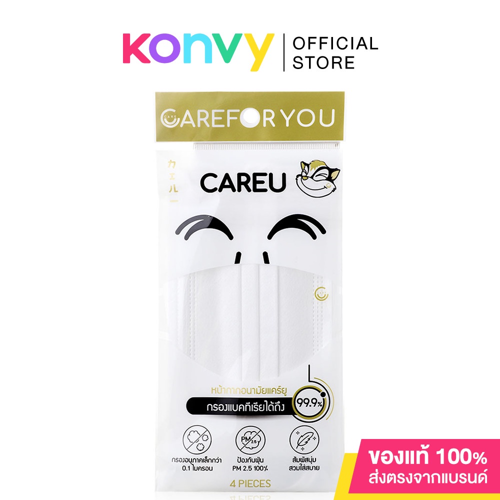 CAREU Medical Face Mask 4pcs #Black หน้ากากอนามัยทางการแพทย์ 3 ชั้น สีดำ 4 ชิ้น เกรดนุ่ม พิเศษ ไม่ระคายเคืองผิว พร้อมป้องกันฝุ่นและแบคทีเรีย 99.9%• ประสิทธิภาพการกรองแบคทีเรีย 99.9%
