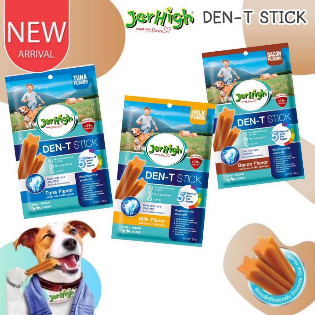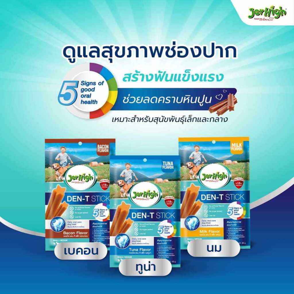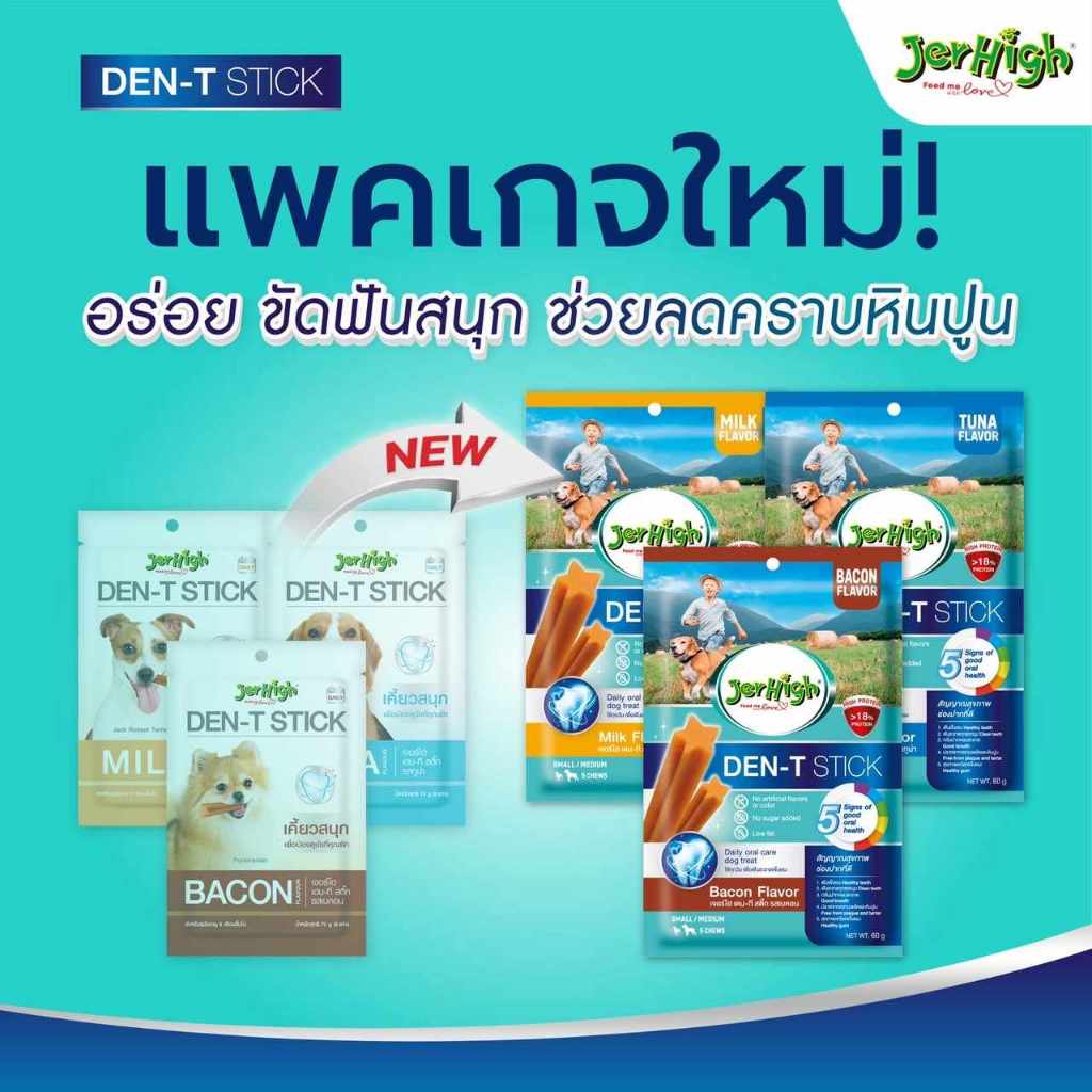 - JerHigh Den-T Stick เปลี่ยนแพคเกจใหม่แล้ว! ช่วยดูแล 5 สัญญาณสุขภาพฟันที่ดี! 🐶🦷- บอกลาการแปรงฟันแสนยากลำบากให้น้องหมาได้ขัดสนุกเคี้ยวอร่อยแถมช่วยลดคราบหินปูนด้วย JerHigh Den-T Stick!