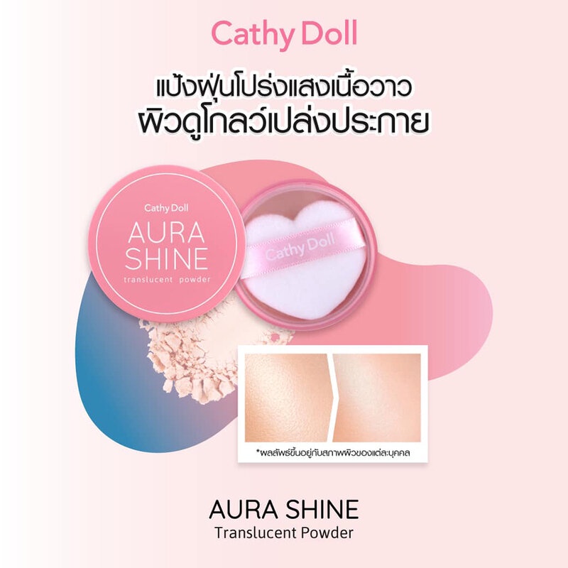 • Cathy Doll Aura Shine Translucent Powder 4.5g แป้งฝุ่นกันแดด เนื้อวาวมอบความโกลว์ให้กับผิว ควบคุมความมัน