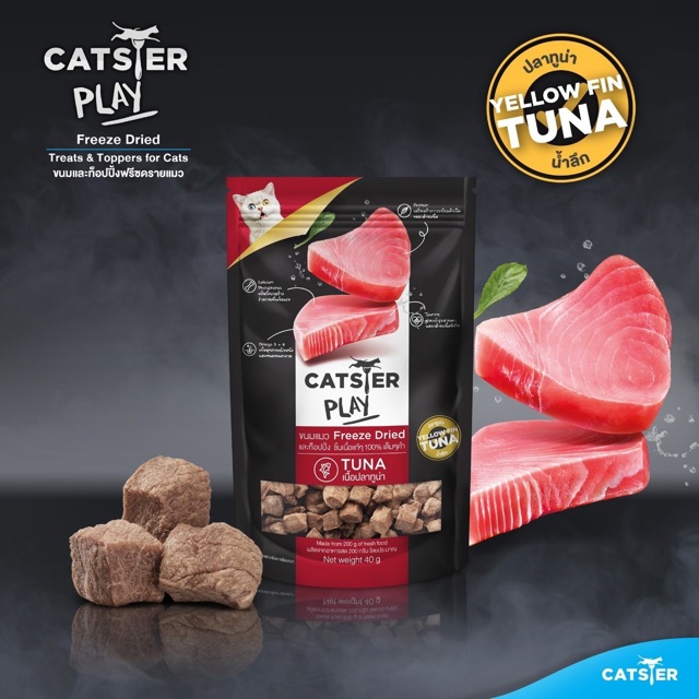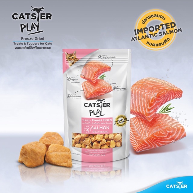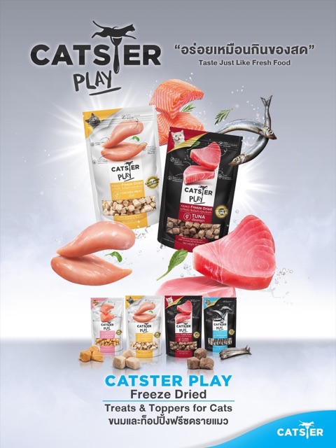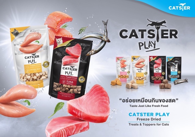 CATSTER PLAY ขนมแมว Freeze Dried ชิ้นเนื้อแท้ๆ 100% เต็มคำ ไม่ใช้วัตถุกันเสีย สี กลิ่นสังเคราะห์ เกลือและวัตถุปรุงแต่ง จากธรรมชาติ 100% ขนาด 40 กรัม• คุณค่าทางอาหารสูงกว่าและอร่อยกว่า