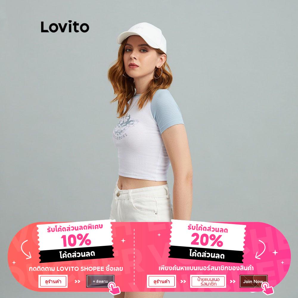 Lovito Áo thể thao cắt ngắn không ma sát Bộ đồ tập Yoga thể dục cho nữ l34ad012 (Màu Đen)