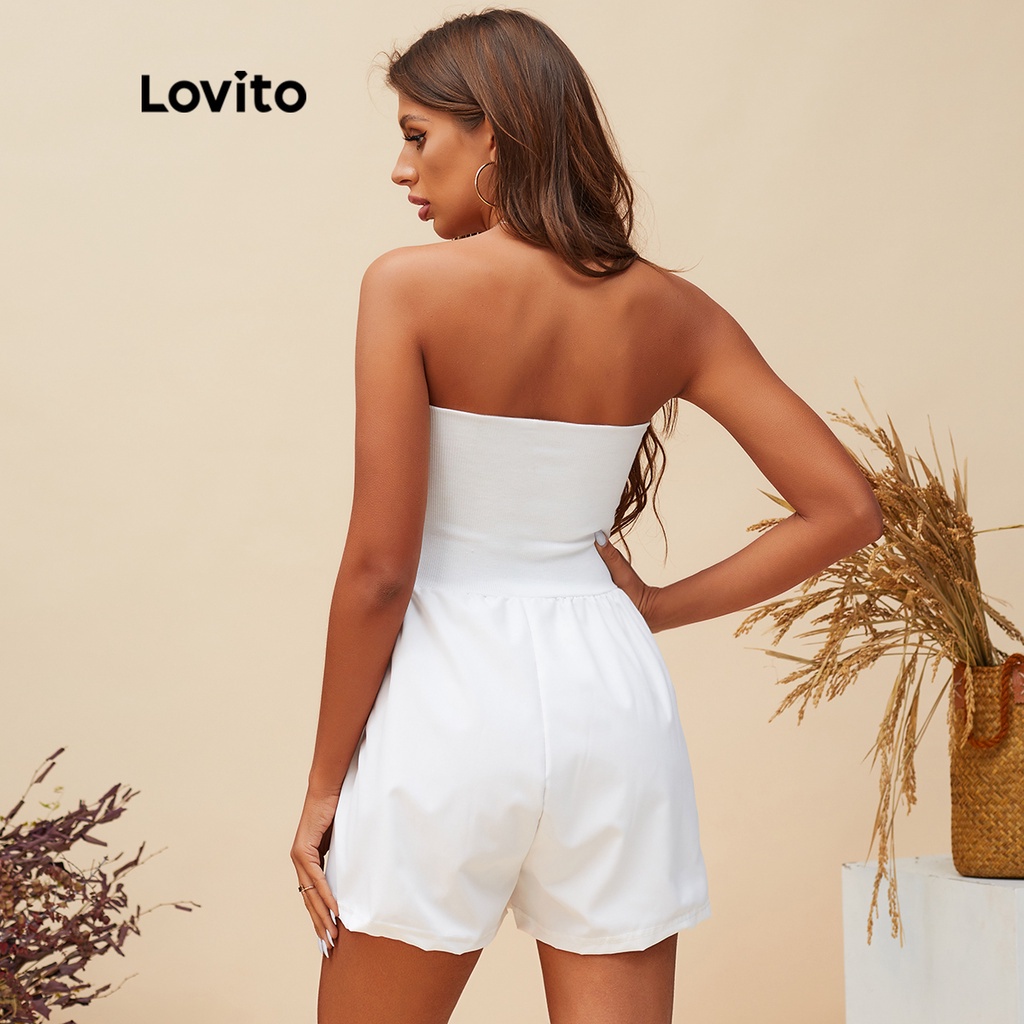 Lovito áo liền quần nơ hoa lưng thanh lịch cho nữ lbe03109 (Màu Trắng)