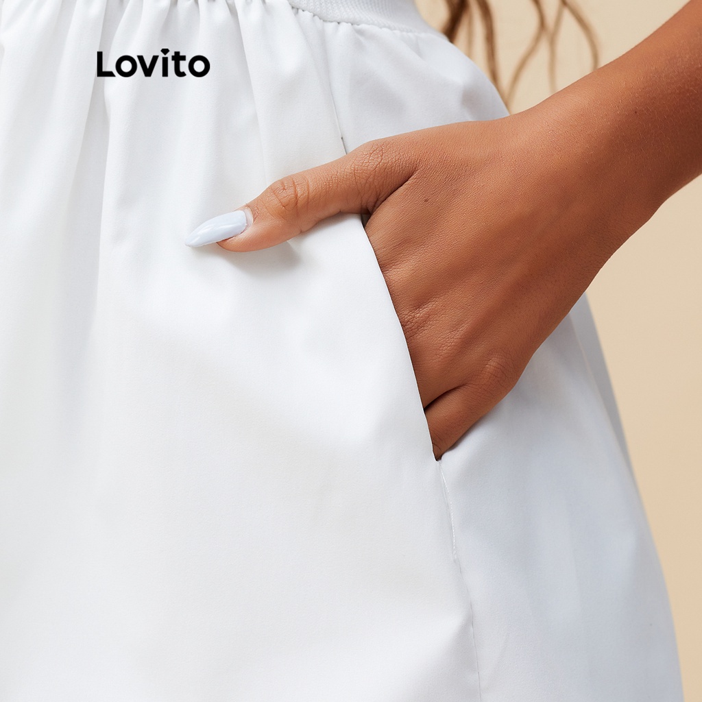 Lovito áo liền quần có túi màu trơn thường ngày cho Nữ l55ad070 (Nhiều màu)