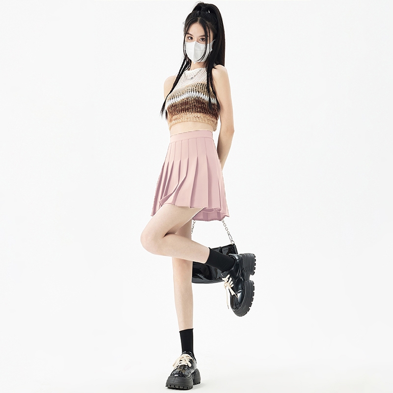 ตัวพลีทกระโปรงมีความงาม สามารถเเมทช์กับรองเท้าทุกแบบ