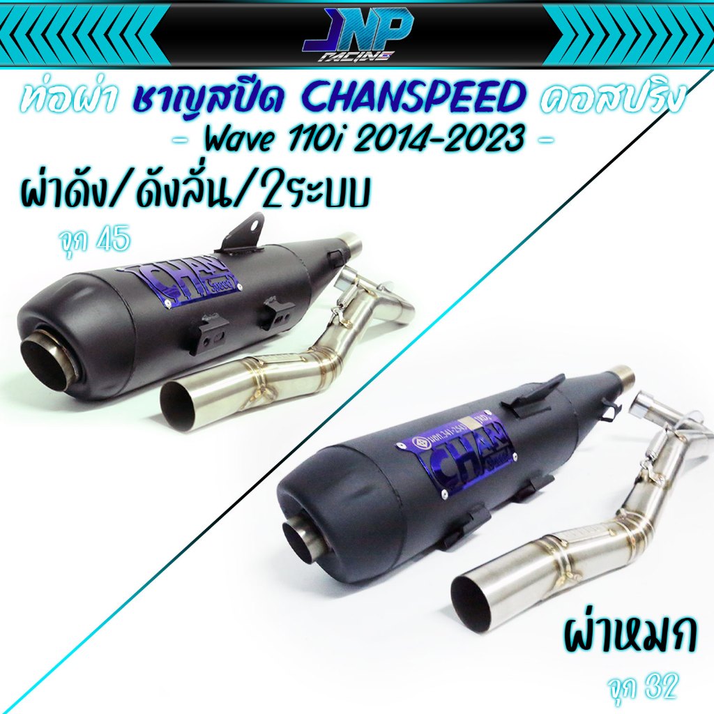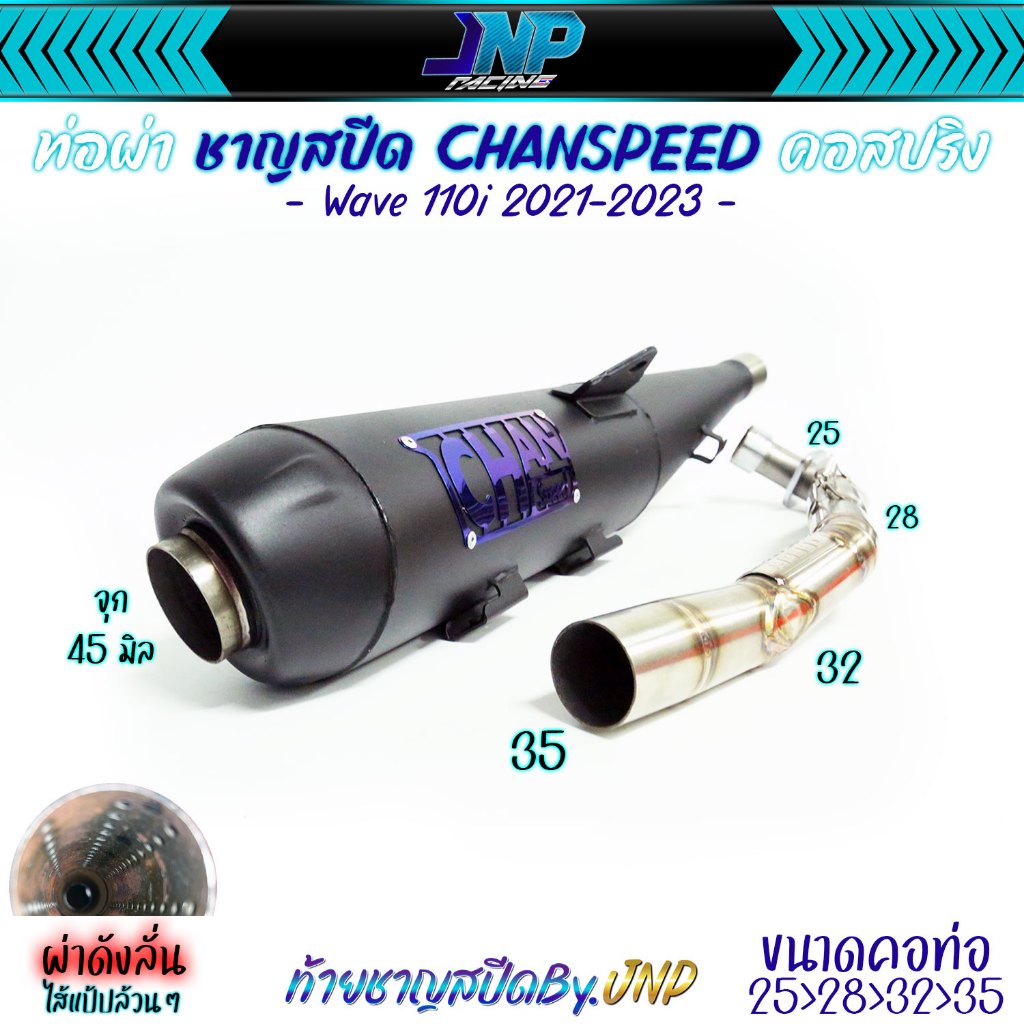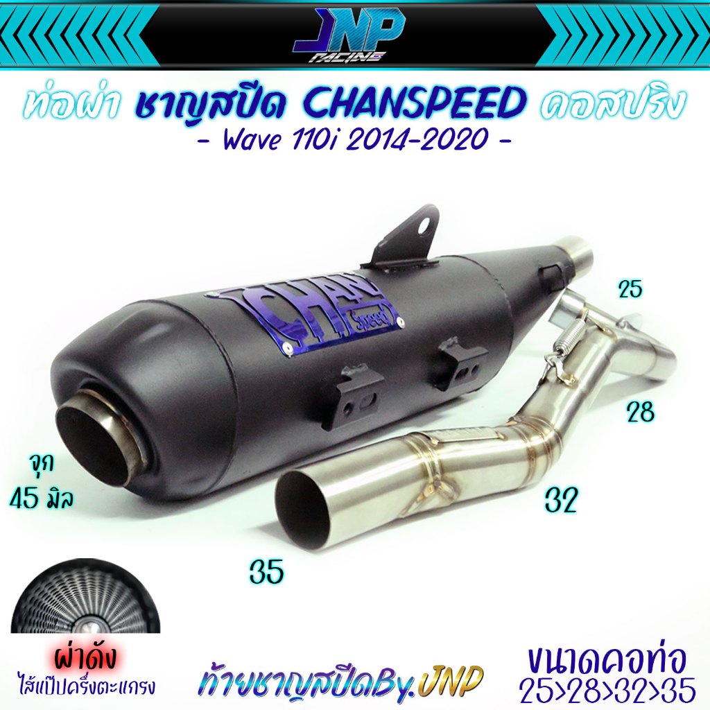 ท่อผ่าดัง ไส้แป้ป+ตะแกรง /แป้ปล้วน/ท่อ2ระบบ ปลายจุกโตW-110i 2014-2020 คอไล่สปริง25-35มิล จุก45มิล
