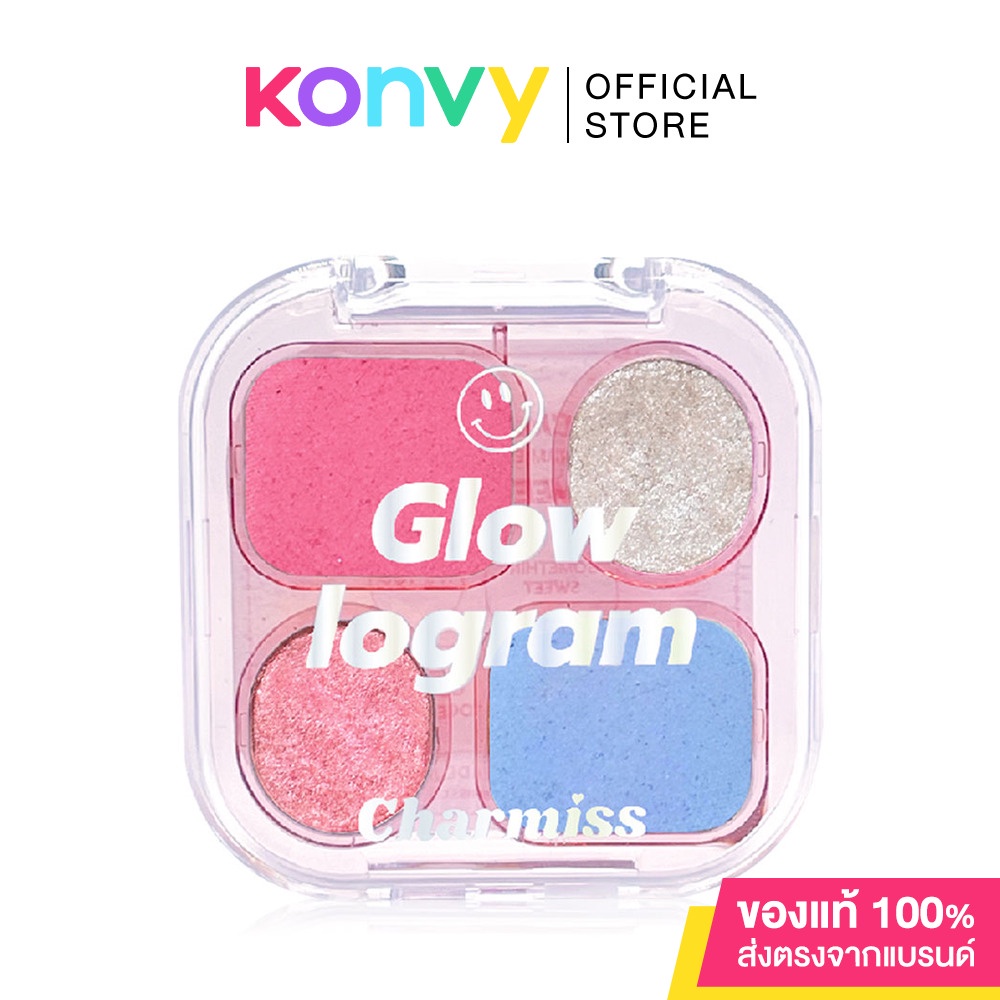 Charmiss Glowlogram Eyeshadow Palette 4g #01 Sweet Moments สัมผัสใหม่ของอายแชโดว์รูปแบบเนื้อโมจิเจ้าแรกในไทย เนื้อนุ่มเด้ง สีชัดได้ในปาดเดียว ติดทนนาน เมื่อเซ็ตตัวแล้วจะเปลี่ยนเป็นแป้ง มาในขนาดพกพา 4 เฉดสี มีทั้งเนื้อแมทและชิมเมอร์ในตลับเดียว เพิ่มประกายให้ดวงตาสวยเด่น มีเสน่ห์ ไม่เหมือนใคร ด้วยชิมเมอร์เนื้อเนียนละเอียด สามารถใช้ได้ทุกโอกาส ตกแต่งได้หลากหลายสไตล์ มีทั้งหมด 3 โทนสีที่จะทำให้ทุกโมเม้นต์ของคุณพิเศษกว่าที่เคย• เนื้อโมจินุ่มเด้ง สีชัดได้ในปาดเดียว ติดทนนาน