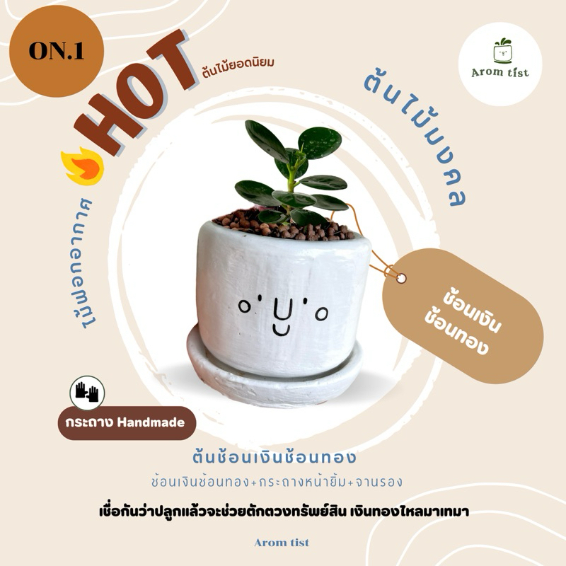 ต้นไม้มาพร้อมกับกระถางปูนหน้ายิ้ม