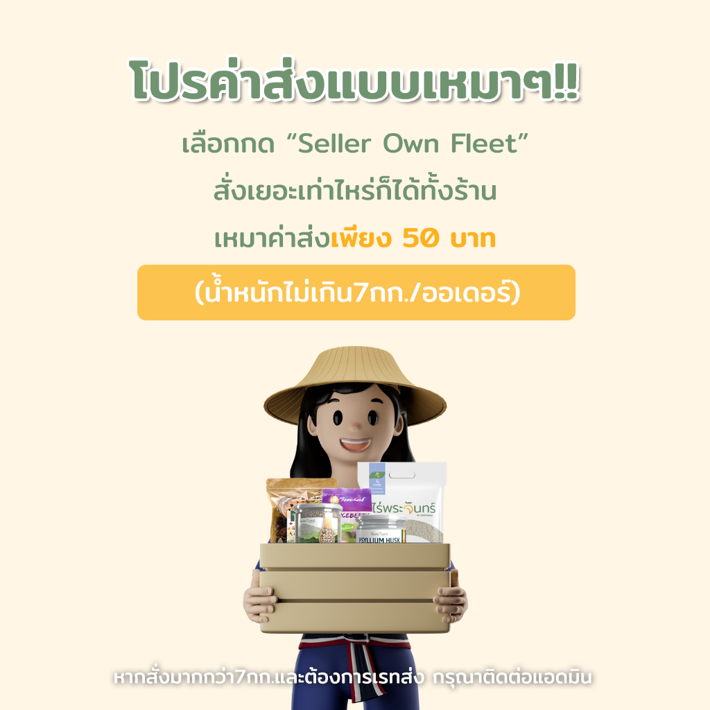 *ค่าส่งถูกที่สุด* โดยค่าส่งแบบเหมา 50 บาท สั่งในร้านเท่าไหร่ก็ได้ (ไม่เกิน 7 Kg)