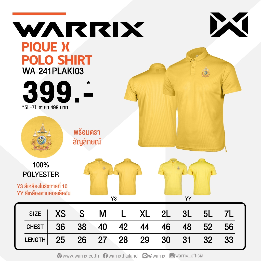 WARRIX เสื้อโปโล สีเหลือง พร้อมตราสัญลักษณ์ รุ่น PIQUE POLO รุ่น WA-241PLAKI03Sản phẩm cùng danh mục