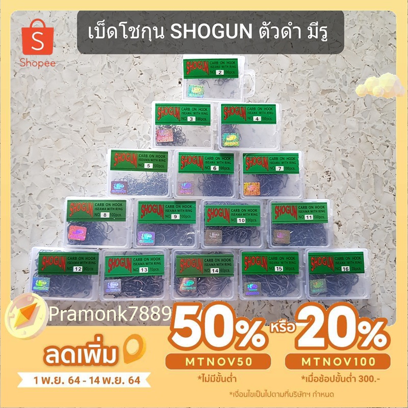 เบ็ดโชกุน SHOGUN ตัวดำ มีรู เบ็ดกล่องใสๆ เบ็ดกล่องสีเขียว ตัวเบ็ด ตะขอเบ็ด ตะขอเบ็ดตกปลา ดวงเบ็ด เบ็ดตกปลา อุปกรณ์ตกปลา- No. 2,3,4,5,6,7,8,9,10,11 บรรจุ 100 ตัว
