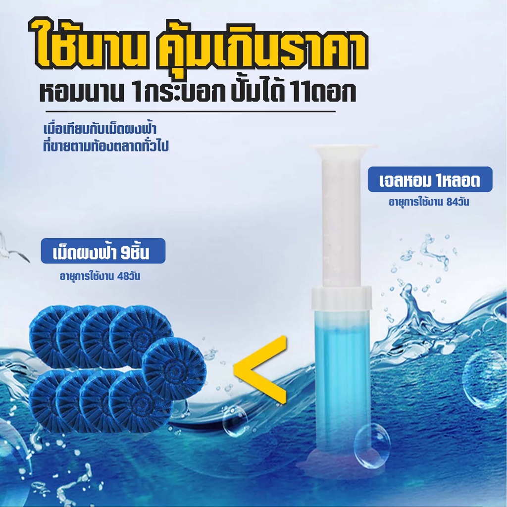 เจล 1จุดใช้ได้นาน 1สัปดาห์ / 1กระบอกใช้ได้นานถึง 42วัน ขึ้นอยู่กับความถี่ในการกดชักโครกด้วยนะคะ หลอดนึงใช้ได้ประมาณ 200ครั้ง