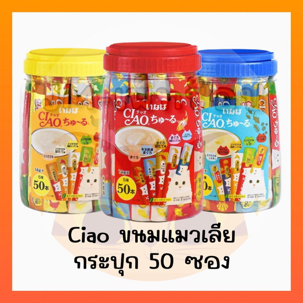 🔥พร้อมส่ง🔥Ciao ขนมแมวเลียชูหรุกระปุก 50 ซอง