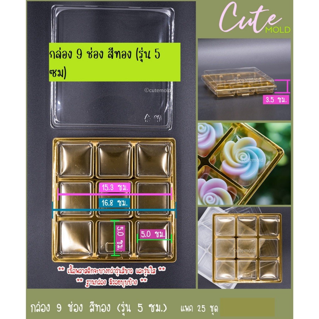 -กล่อง 9 ช่อง สีทอง +ฝาใส 1 แพ๊ค มี 25 ชุด