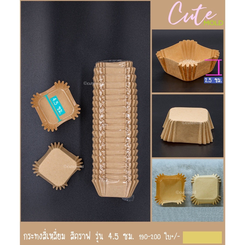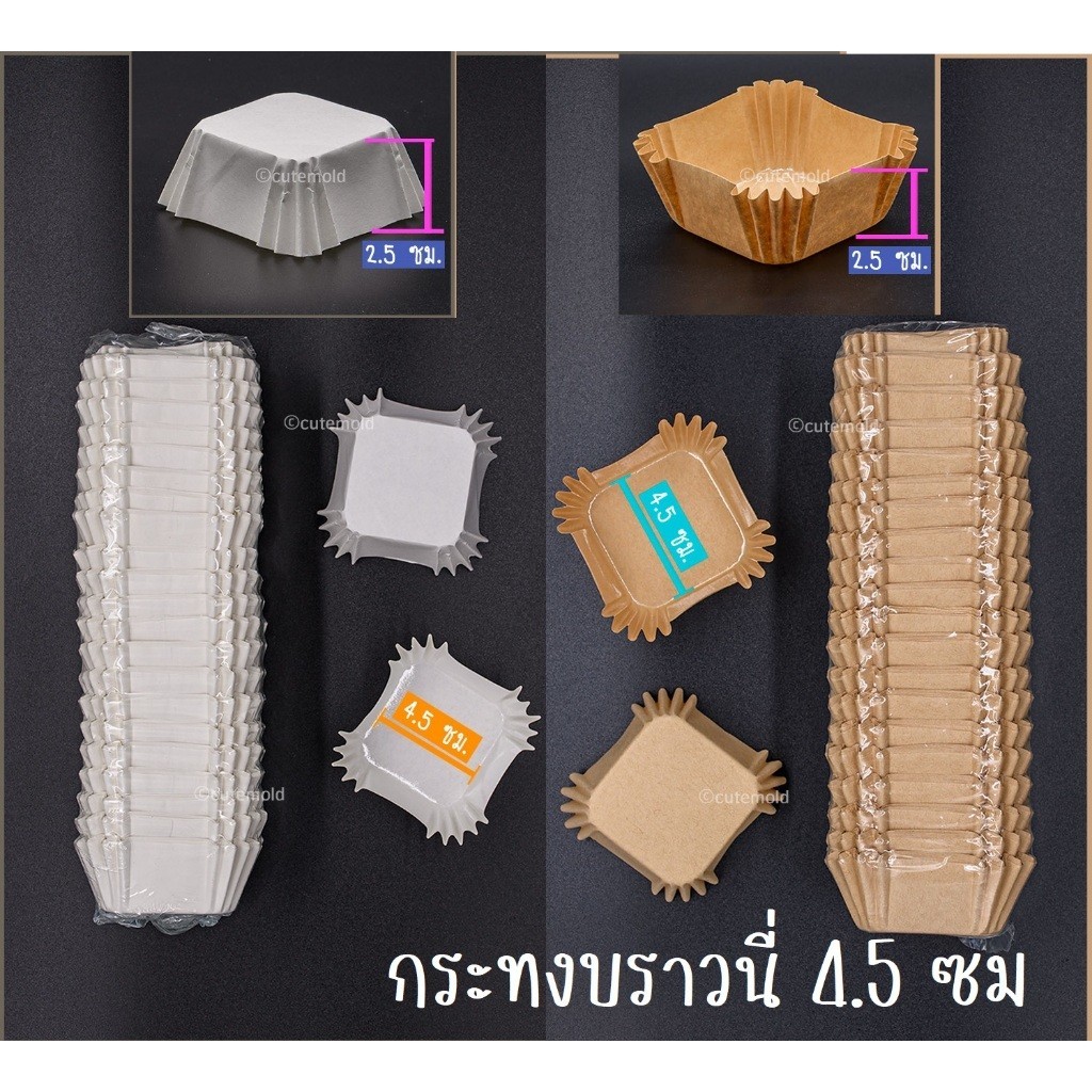 กระทงสี่เหลี่ยม กระทงบราวนี่ ถ้วย บราวนี่ รุ่น 4.5 ซม เป็นกระดาษแบบหนา เคลือบกันน้ำ