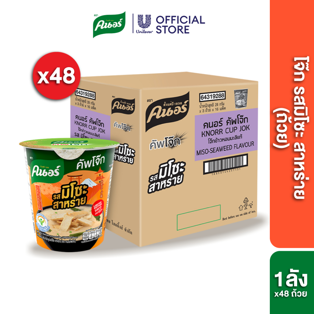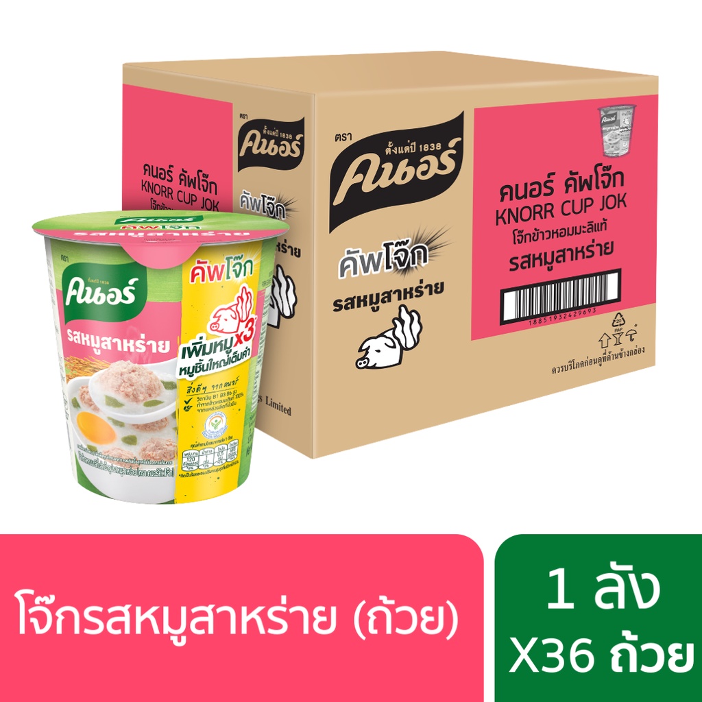 [ส่งฟรี] Knorr cup jok 32 g. x36คนอร์ คัพโจ๊ก แบบถ้วย32 กรัม (1ลัง 36 ถ้วย) - รสหมู-สาหร่าย