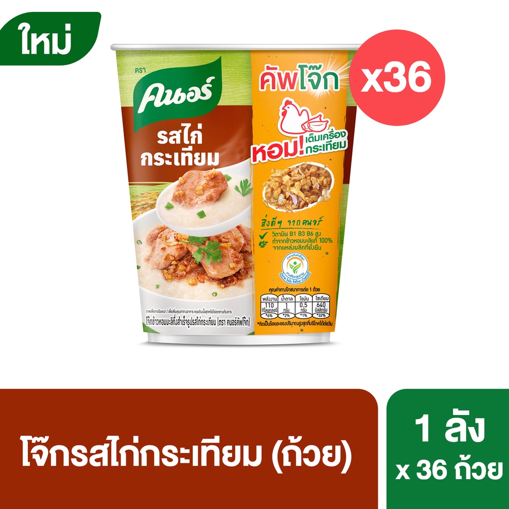 [ส่งฟรี] Knorr cup jok 32 g. x36คนอร์ คัพโจ๊ก แบบถ้วย32 กรัม (1ลัง 36 ถ้วย) - รสไก่