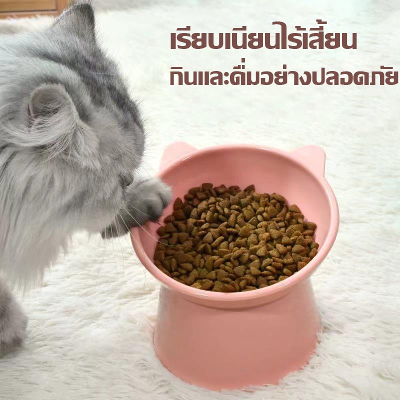 - ชามสัตว์เลี้ยงแบบยกสูง ทำให้แมวไม่ต้องก้มหัวในการกินอาหารมากเกินไป