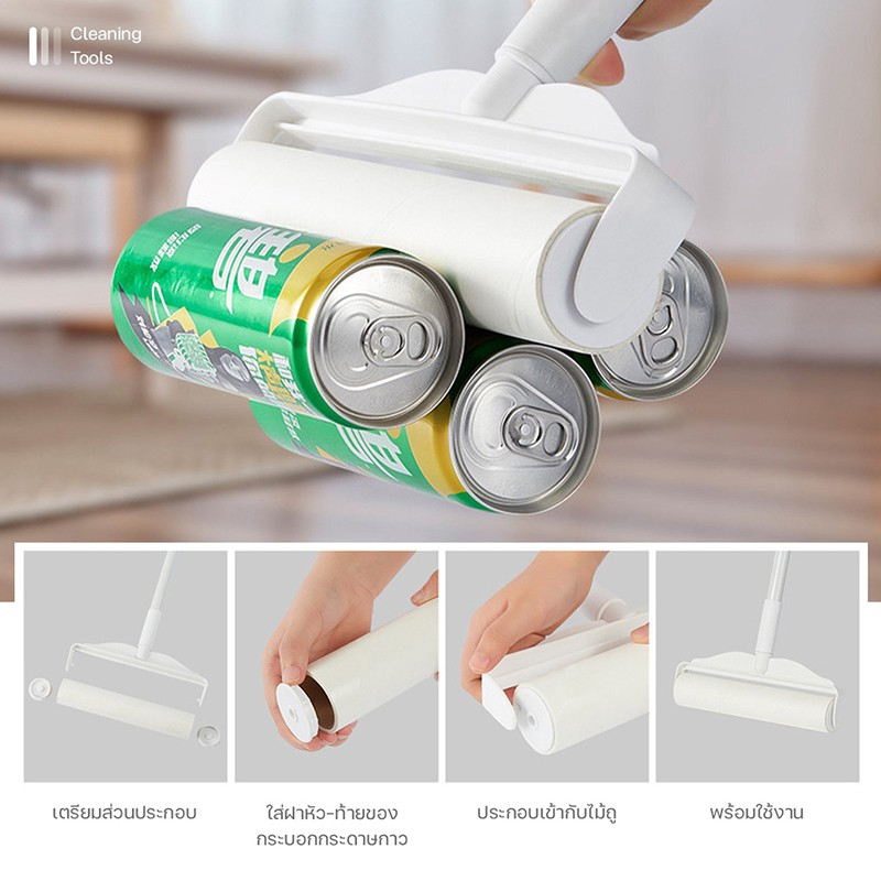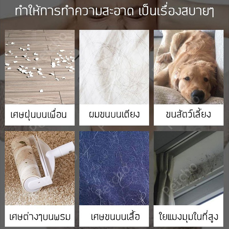 เก็บฝุ่น สิ่งสกปรก เส้นผม ขนสัตว์ ได้เป็นอย่างดี เพียงกลิ้งลูกกลิ้งบริเวณที่ต้องการทำความสะอาด