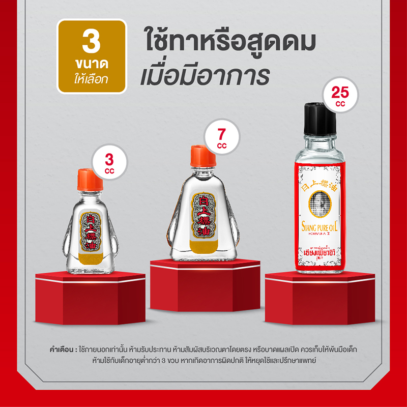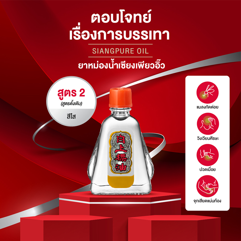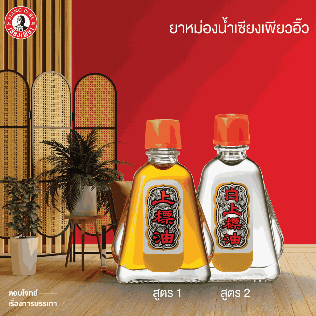 Siang Pure Oil Formula II เซียงเพียวน้ำ สูตร 2 ขนาด 7 ซีซี (จำนวน 6 ชิ้น)ยาหม่องน้ำใส สูตรหอมละมุน กลิ่นหอมเย็นสดชื่น ผ่อนคลายจากเป๊ปเปอร์มิ้นท์ ออยล์ เมนทอล การบูร และยังคงความเป็นเอกลักษณ์จากน้ำมันชินนาม่อน (น้ำมันอบเชย) และโคลฟ-ออยล์ (น้ำมันกานพลู) ช่วยปรับสมดุลของสมองที่อ่อนล้า ให้ค่อยๆสดชื่นขึ้น ตัวยาทุกชนิดผ่านการคัดสรรอย่างพิถีพิถัน และใส่ใจในทุกขั้นตอนการผลิต ได้รับการรับรองมาตรฐานคุณภาพระดับสากล GMP PIC/s ด้วยฤทธิ์ร้อนของตัวยาจะเข้าไปกระตุ้นพลังงานและการไหลเวียนของโลหิตให้กลับสู่ภาวะสมดุล บรรเทาอาการวิงเวียนศีรษะ หน้ามืดคล้ายจะเป็นลม คัดจมูก จุกเสียด แน่นท้อง เป็นตะคริว เคล็ดขัดยอก ฟกช้ำ ปวดเมื่อยร่างกาย และรักษาอาการคันจากแมลงสัตว์กัดต่อย