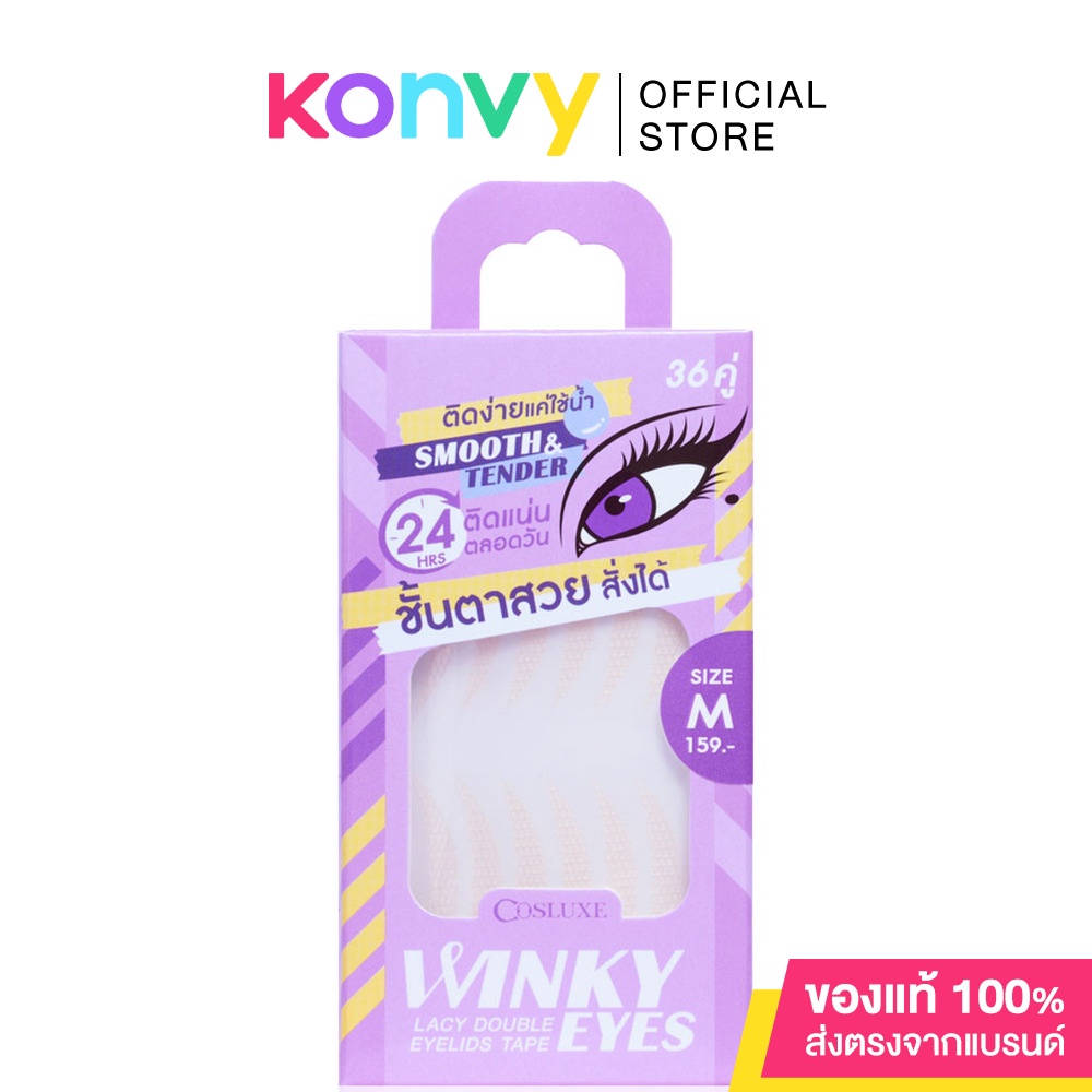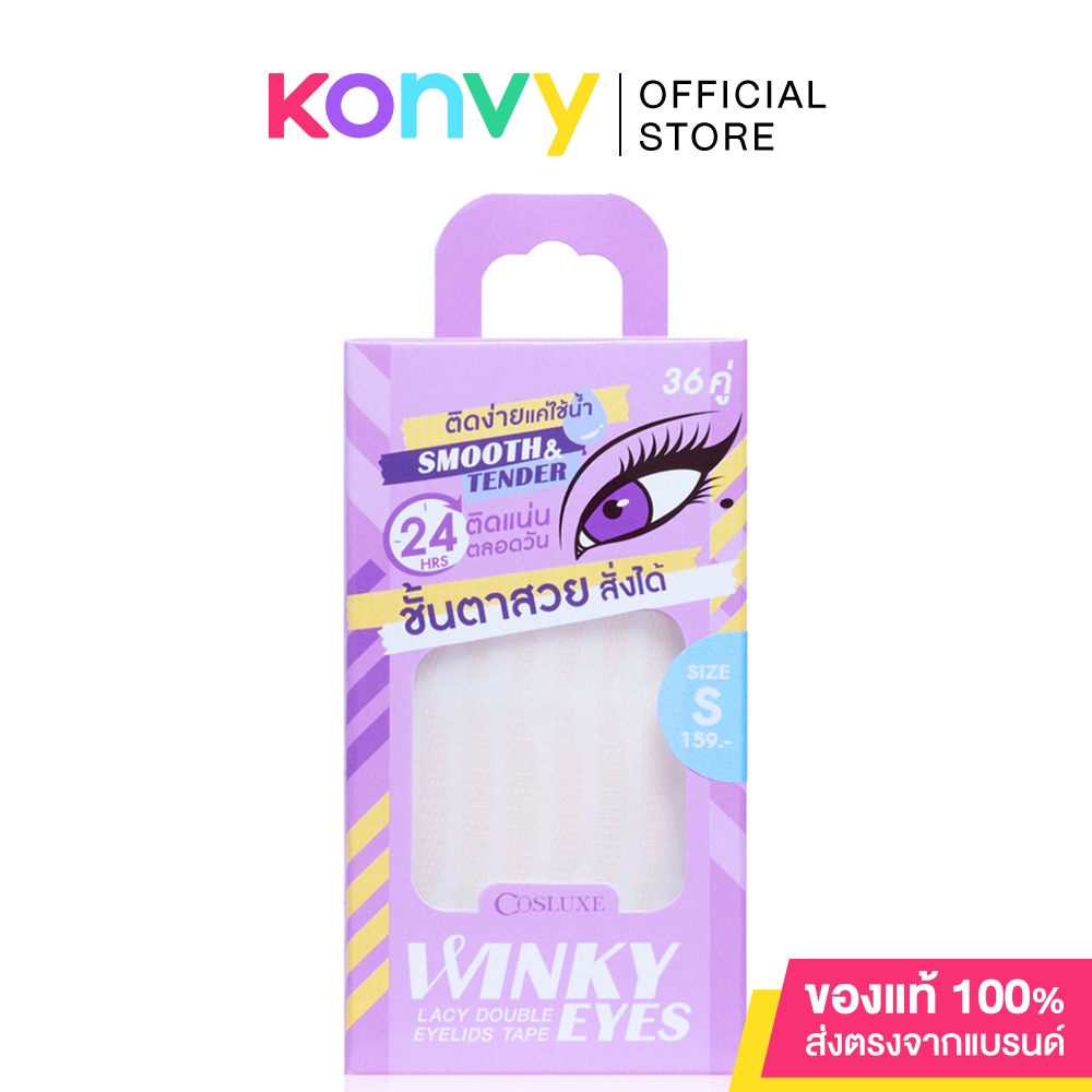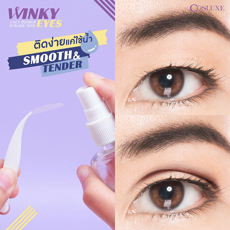Cosluxe Winky Eyes - Lacy Double Eyelids Tape Size S นวัตกรรมใหม่ล่าสุดของการสร้างชั้นตาสวยสั่งได้ ด้วยตาข่ายติดตาสองชั้นแบบไม่ใช้กาว ไซส์ S แนบสนิทไปกับผิว สยบทุกสายตาแบบไม่ต้องสะดุด เพียงแค่ใช้น้ำชโลม สามารถติดทนนานตลอดวัน• Size S: เหมาะกับคนตาชั้นเดียว หางตาตก