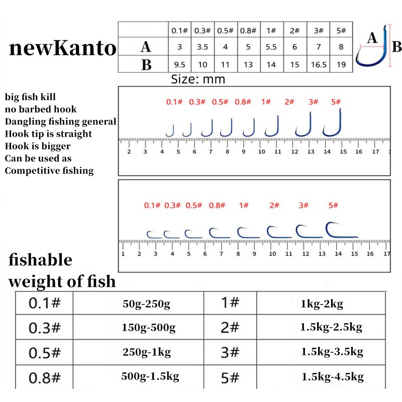 ตะขอขนาด: หลายข้อมูลจำเพาะตัวเลือก