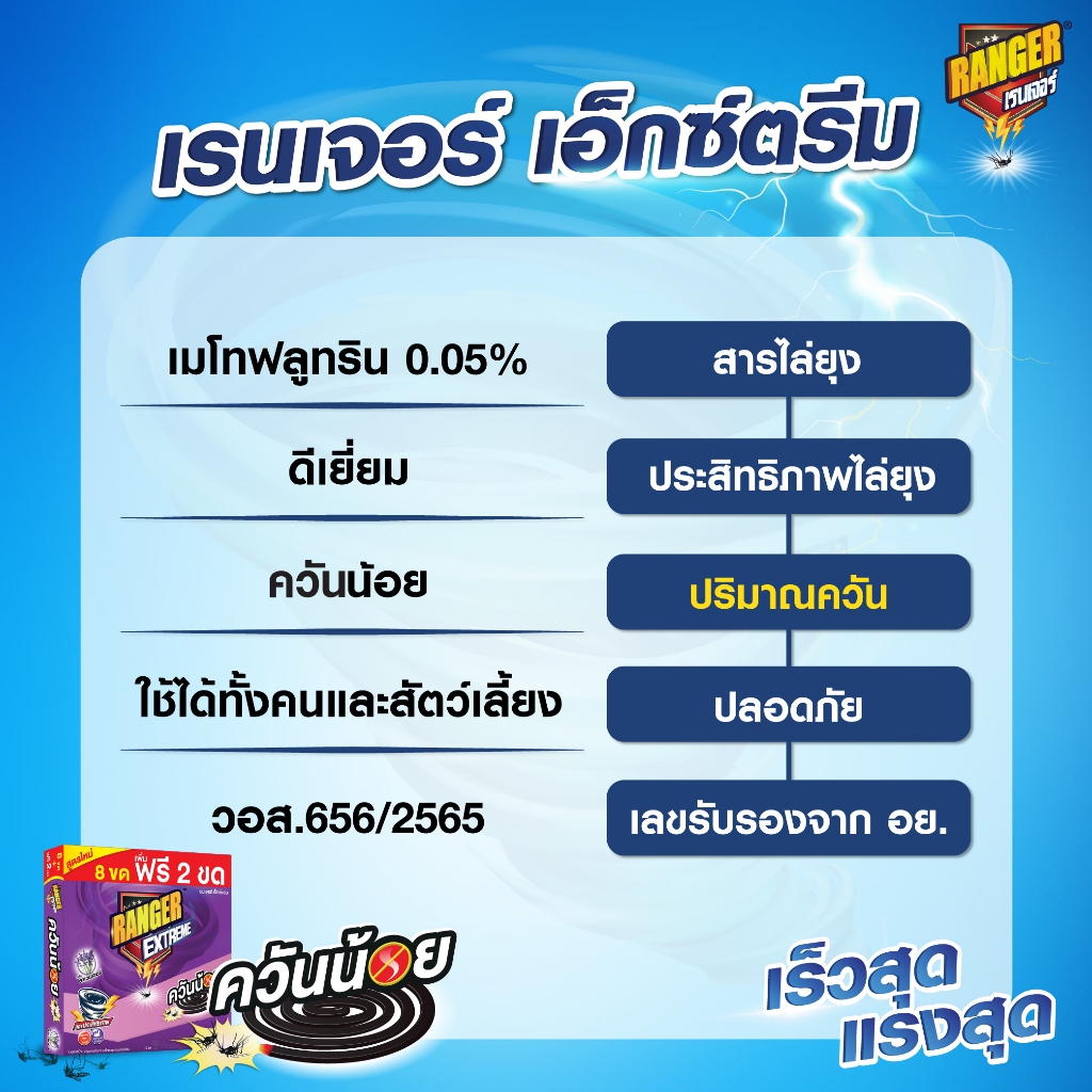 #เรนเจอร์ #ranger #เรนเจอร์เอ็กซ์ตรีม #ยาจุดกันยุง #ยาจุดกันยุงควันน้อย