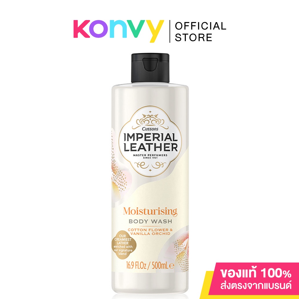 • Cussons Imperial Leather Moisturising Body Wash Cotton Flower & Vanilla Orchid 500ml ยกระดับการอาบน้ำในทุกวันด้วยเจลอาบน้ำ ห่อหุ้มผิวด้วยเอสเซนเชียลออยล์สูตรเฉพาะของราชวงศ์ให้ฟองโฟมเนียนนุ่มเพื่อสัมผัสที่พิเศษเหนือกาลเวลา เปิดสัมผัสแรกด้วยกลิ่นจากส้มซ่า และผลแคสซิสผสานให้เกิดความหอมความด้วยกลิ่นของกลีบกุหลาบและดอกมะลิ เพิ่มความพิเศษด้วยสัมผัสเบาๆ จากคาราเมล ยางจากอัมพัน และไม้หอม