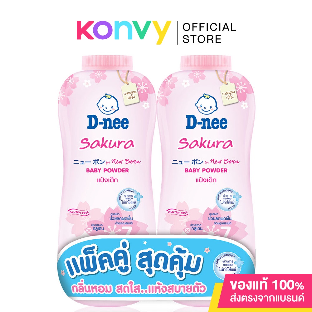 •D-nee Baby Powder For Newborn [350g x 2pcs] #Sakura แป้งเด็ก เนื้อแป้งเนียนละเอียด บริสุทธิ์จากธรรมชาติ ปราศจากสี ช่วยให้ผิวแห้งสบายไร้ผดผื่นด้วยอลันโทอิน และช่วยคงความสมดุลของผิว ให้ผิวลูกเนียนนุ่ม น่าสัมผัส•D-nee Organic Baby Powder [350g x 2pcs] #Green แป้งเด็กสูตรออร์แกนิค เนื้อแป้งเนียนละเอียด สูตรลดฟุ้งสำหรับเด็กแรกเกิดโดยเฉพาะ คงความชุ่มชื้นของผิวด้วยสารสกัดออร์แกนิคข้าวโอ๊ต ดอกคาร์โมมายล์ และน้ำแร่ธรรมชาติ ช่วยให้ลูกน้อยสัมผัสแห้งสบายผิวตลอดวัน และคงความสมดุลของผิว ให้ผิวลูกเนียนนุ่ม น่าสัมผัส