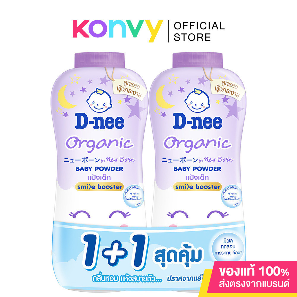 •D-nee Organic Sweet Dream For Newborn Baby Powder Smile Booster Series [350g x 2pcs] แป้งเด็กเนื้อแป้งเนียนละเอียดบริสุทธิ์จากธรรมชาติ ปราศจากสี กลิ่นหอม ช่วยทำให้ลูกน้อยผ่อนคลาย สบายตัวตลอดทั้งวัน