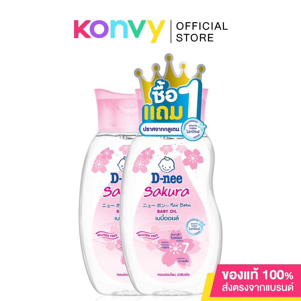 Cr. facebook.com/DneeThailand•D-nee Pure Baby Oil Sakura [Pink] [200ml x 2pcs] เบบี้ออยล์ เหมาะสำหรับเด็กแรกเกิด เนื้อออยล์ใส ซึมซาบไว ไม่เหนียวเหนอะหนะ เติมเต็มเก็บกักความชุ่มชื้นให้กับผิวลูกน้อยด้วยสารสกัดจากธรรมชาติ ปราศจากสีและสารกันเสีย