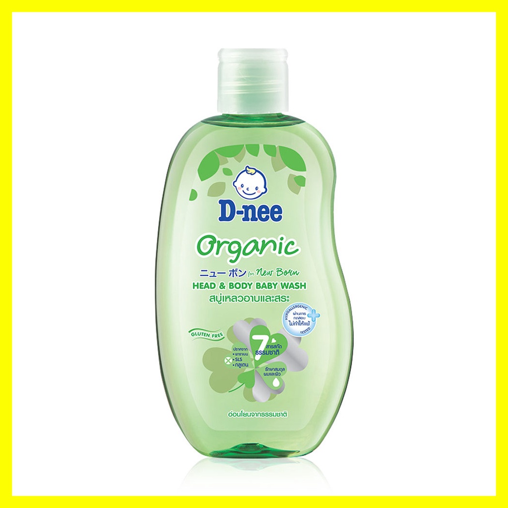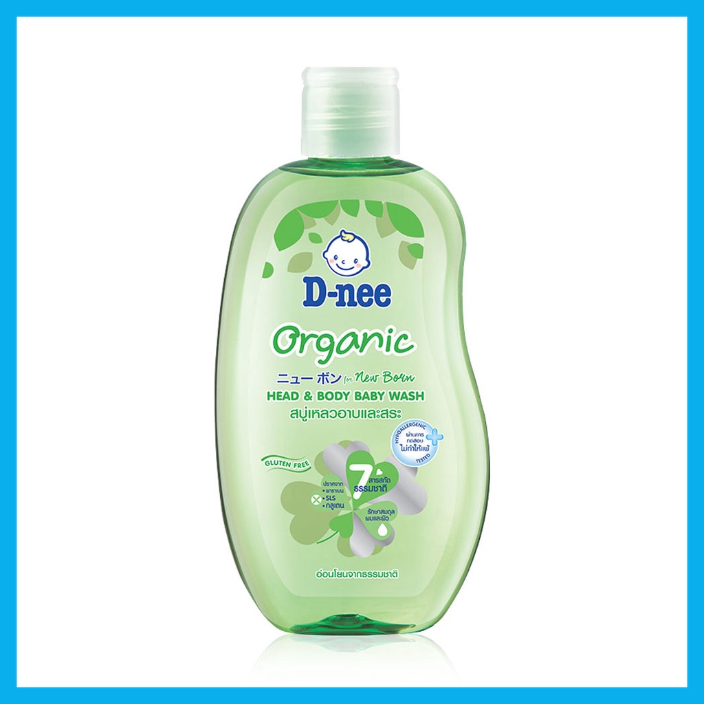 D-nee Organic Head & Body Baby Wash For Newborn 200ml #Greenสบู่เหลวอาบน้ำและสระผม อ่อนโยนจากสารสกัดธรรมชาติ 7 ชนิด เหมาะสำหรับผิวเด็กทารก ทำความสะอาดผิวและเส้นผมอย่างอ่อนโยน ล้างออกง่าย รวมทั้งคงสมดุลตามธรรมชาติของผิวและเส้นผม ผิวจึงนุ่มละมุน ผมหวีง่ายไม่พันกัน• ผสานคุณค่ามอยส์เจอร์ไรเซอร์จากสารสกัดธรรมชาติ 7 ชนิด เพื่อปกป้องผิวและเส้นผมให้นุ่ม ชุ่มชื้น