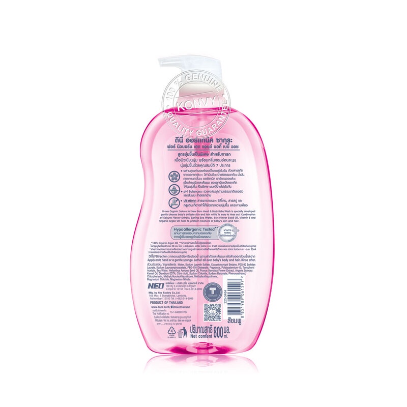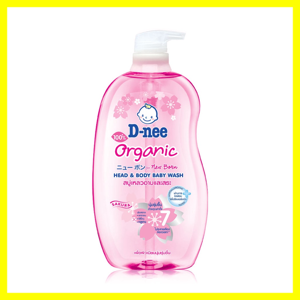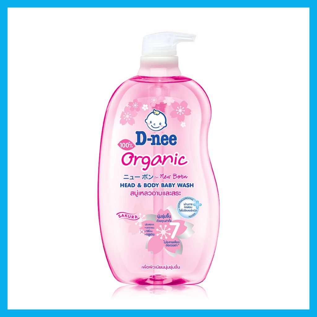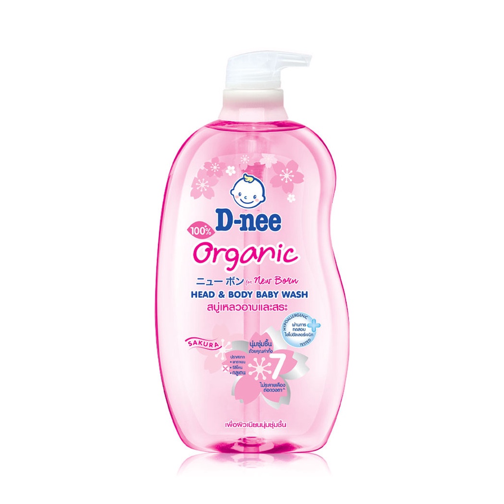 D-nee Organic Head & Body Baby Wash For Newborn 800ml #Sakuraสบู่เหลวอาบน้ำและสระผม สูตรชุ่มชื้นเป็นพิเศษ สำหรับทารก ช่วยบำรุงผิวและเส้นผม เพื่อผิวเนียนนุ่มน่าสัมผัส พร้อมถนอมผิวอันบอบบางอย่างอ่อนโยน• สารสกัดธรรมชาติจากดอกซากุระ วิตามินอี น้ำแร่ และน้ำมันดอกทานตะวัน ช่วยบำรุงผิวและเส้นผม ให้นุ่มชุ่มชื้นเป็นพิเศษ