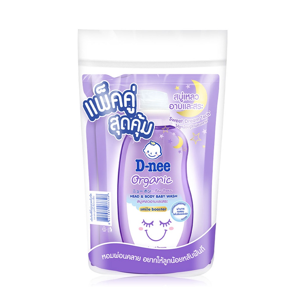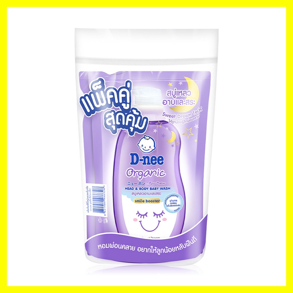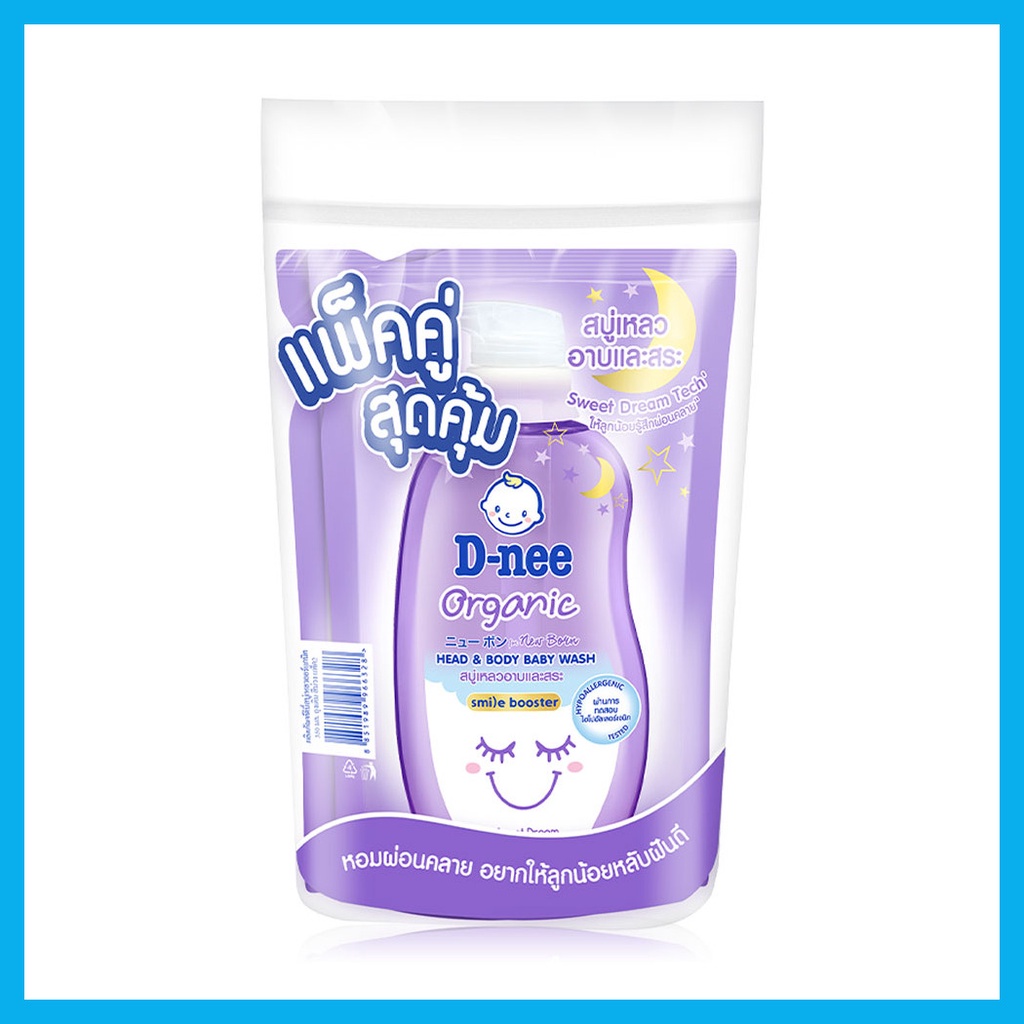 Cr.facebook.com/DneeThailandD-nee Organic Head & Body Baby Wash For Newborn Refill [350ml x 2pcs] #Sweet Dreamดีนี่ สบู่เหลวเด็กออร์แกนิค อาบและสระ สูตรสวีทดรีม รีฟิล ด้วย Sweet Dream Tech กลิ่นหอมผ่อนคลาย ให้ลูกน้อยรู้สึกผ่อนคลาย" สบายผิว พร้อมรับการพักผ่อนอย่างเต็มที่