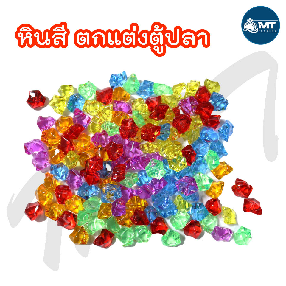 หินคริสตัลสีสันสวยงาม เหมาะสำหรับตกแต่งตู้ปลา ให้ดูสวยยิ่งขึ้น มีหลายลายให้เลือกผลิตจากพลาสติกคุณภาพดี ไม่เป็นอันตรายต่อสัตว์น้ำ