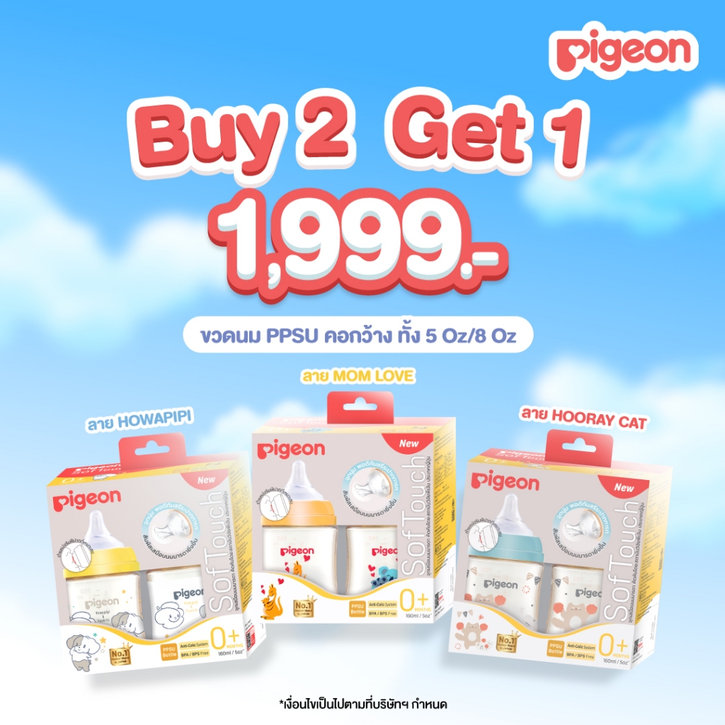 [โปรพิเศษ1,999] Pigeon ขวดนมคอกว้างสีชา PPSU ขนาด 3 แพ็ค (6 ขวด)*สินค้าโปรโมชั่น ไม่รับเปลี่ยนคืนทุกกรณี