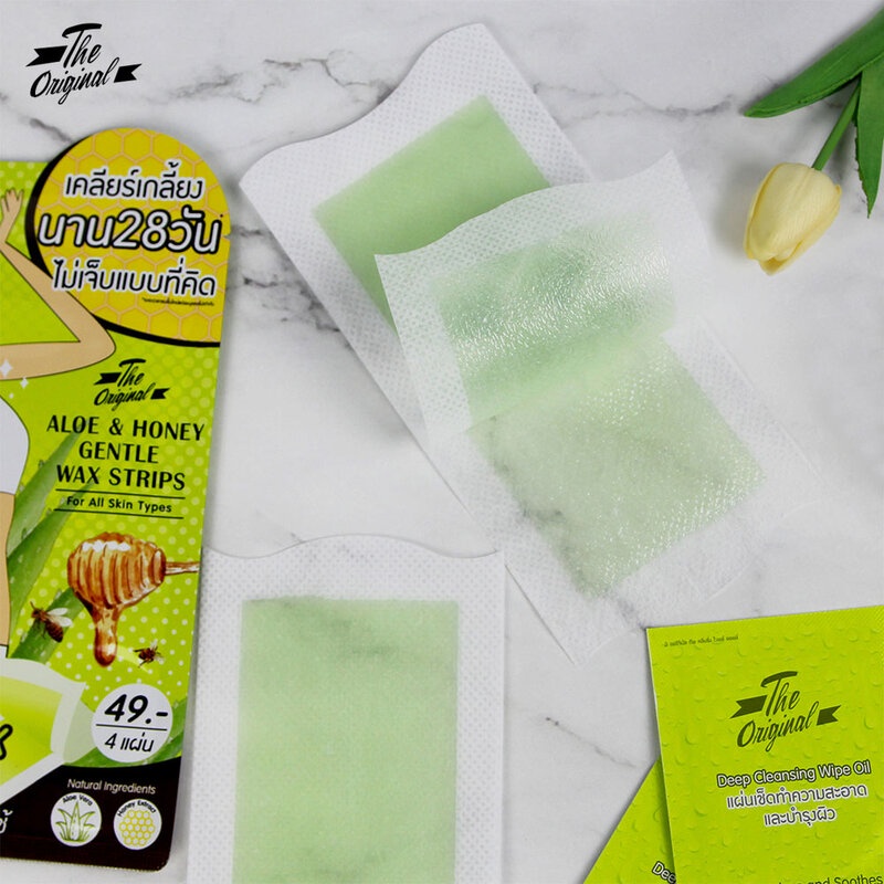 Cr.theoriginalofficial.comThe original Aloe And Honey Gentle Wax Strips 16.9g แผ่นแว็กซ์สำเร็จรูปพร้อมใช้ ใช้งานง่าย กำจัดขนได้อย่างเกลี้ยงเกลาไร้ขน ด้วยคุณค่าสารสกัดอโลเวร่า และน้ำผึ้งธรรมชาติ ช่วยให้ผิวเรียบเนียน บอกลาขนกวนใจ ผิวระคายเคืองจากการโกน-ถอนหรือครีมกำจัดขนกลิ่นฉุน สัมผัสประสบการณ์แว็กซ์ขนง่ายๆ แบบไม่เจ็บเพื่อผิวเรียบเนียนไร้ขน หมดความกังวลใจจากการกำจัดขนรูปแบบเดิม
