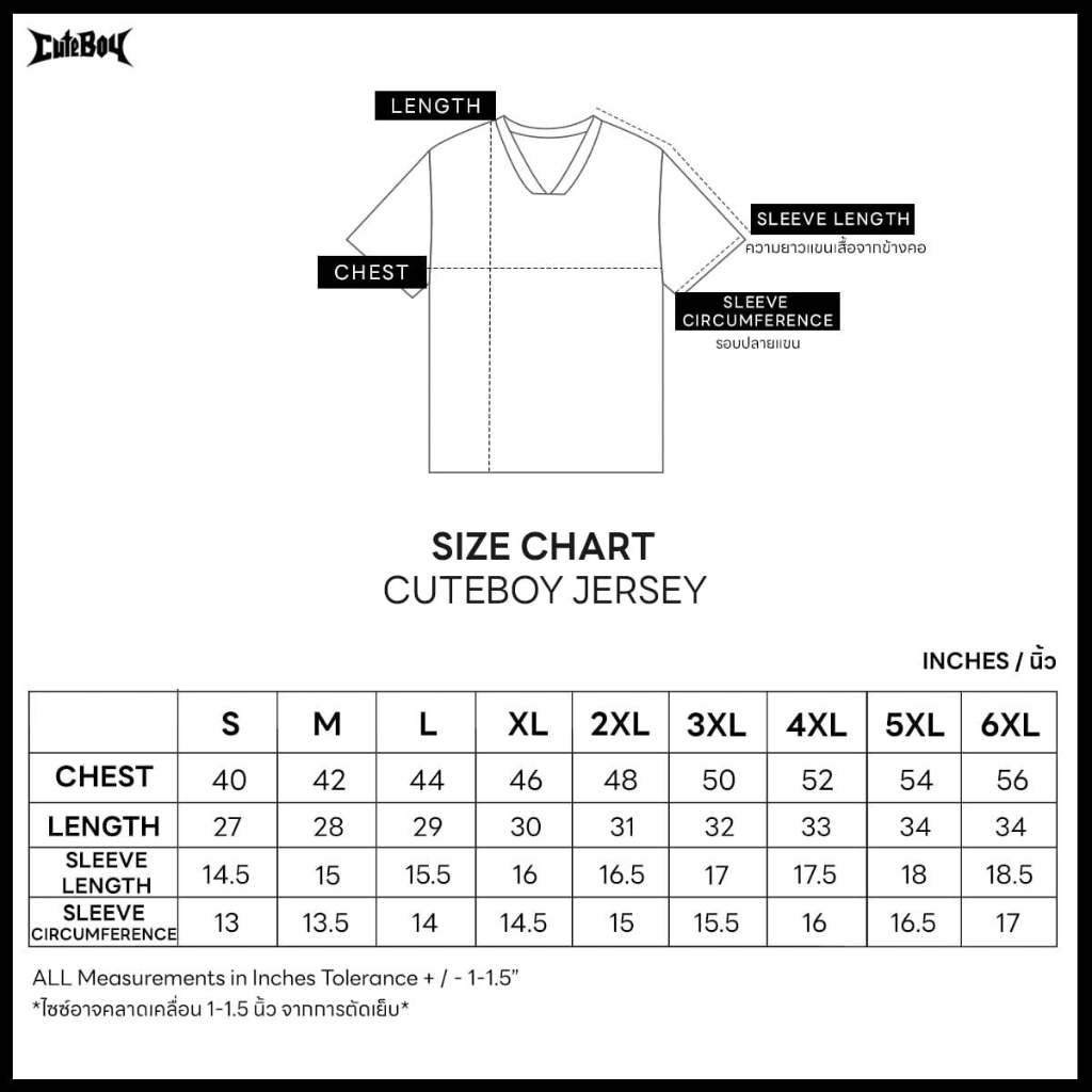 6XL: อก -56" / ยาว 34" / ความยาวแขนจากข้างคอ 18.5" / รอบปลายแขน 17"