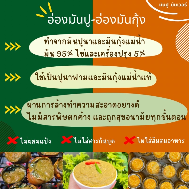✅ อ่องมันปู & อ่องมันกุ้ง ใช้วัตถุดิบที่คัดสรรอย่างดี ผ่านกรรมวิธีการเคี่ยวหลายชั่วโมง✅ สามารถทานกับข้าวสวย หรือข้าวเหนียวร้อนๆได้เลย หรือจะนำไปพัฒนาเป็นเมนูอื่นได้ 🍚✨