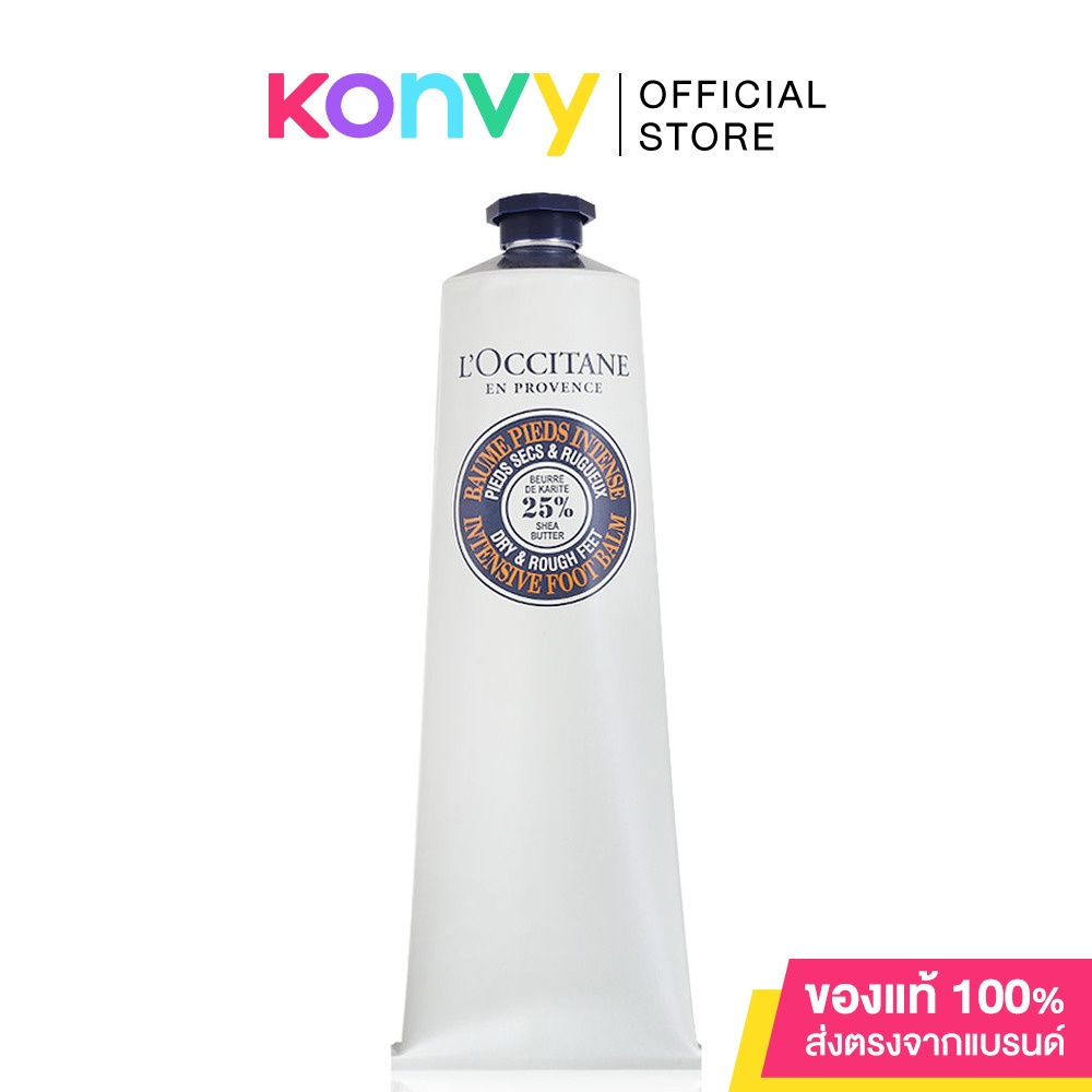 L'Occitane Shea Intensive Foot Balm 150ml บาล์มบำรุงผิวเท้า ด้วยส่วนผสมจากเชีย บัตเตอร์ถึง 25% พร้อมเอสเซนเชียล ออยล์บริสุทธิ์จากดอกลาเวนเดอร์ที่ได้รับรองคุณภาพมาตรฐาน A.O.C. จากรัฐบาลฝรั่งเศส และ Mint Extract ทำให้นอกจากช่วยป้องกันเท้าแตกแล้ว ยังสามารถผ่อนคลายความเมื่อยล้า และฆ่าเชื้อด้วยสูตรแอนตี้แบคทีเรีย• ช่วยบำรุงผิวบริเวณเท้าที่แห้งกร้านง่าย