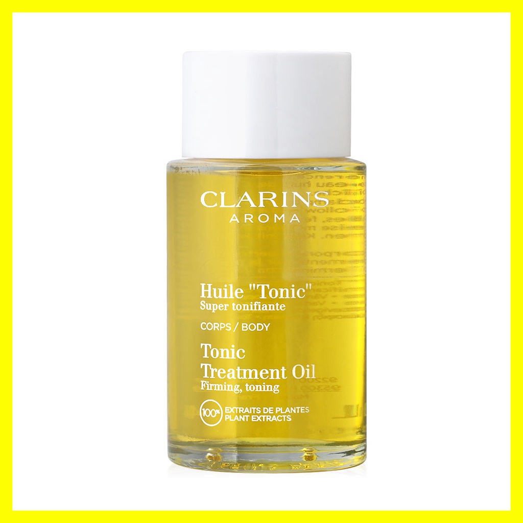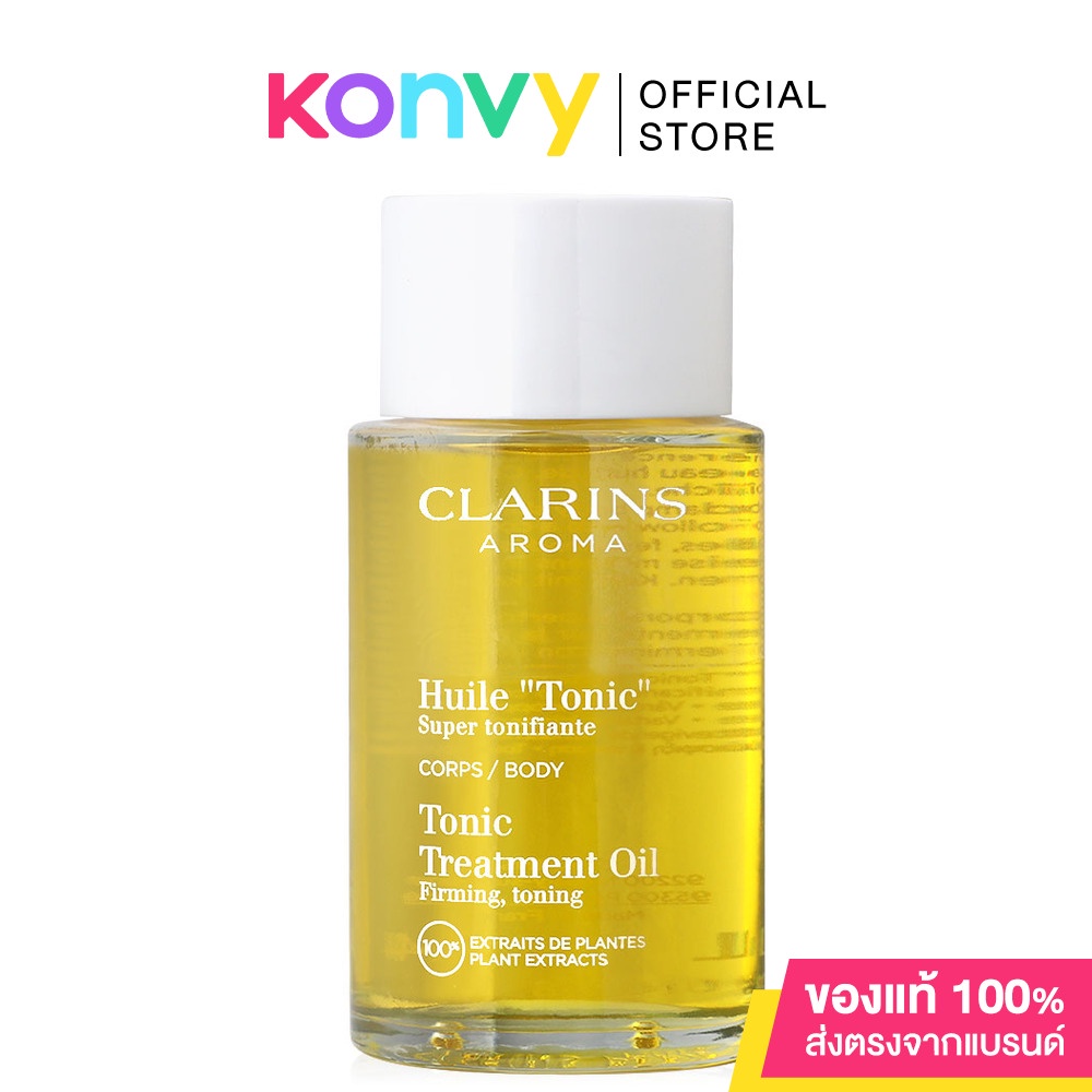 Clarins Huile "Tonic" Tonic Body Treatment Oil 100ml (With Box) น้ำมันบำรุงผิวกายที่ขายดีที่สุดของคลาแรงส์ กับส่วนผสมสารสกัดจากพืชธรรมชาติ 100ช่วยให้ผิวยืดหยุ่น กระชับ เรียบเนียน ต่อต้านรอยแตกลาย พร้อมเก็บกักความชุ่มชื้นไว้ให้ผิวนุ่มนวล น่าสัมผัสอยู่เสมอ กลิ่นอาโรม่าจากพืชธรรมชาติให้ความรู้สึกสบาย ปราศจากสารกันเสีย แนะนำเป็นพิเศษระหว่างตั้งครรภ์หรือหลังลดน้ำหนักส่วนประกอบสำคัญ
