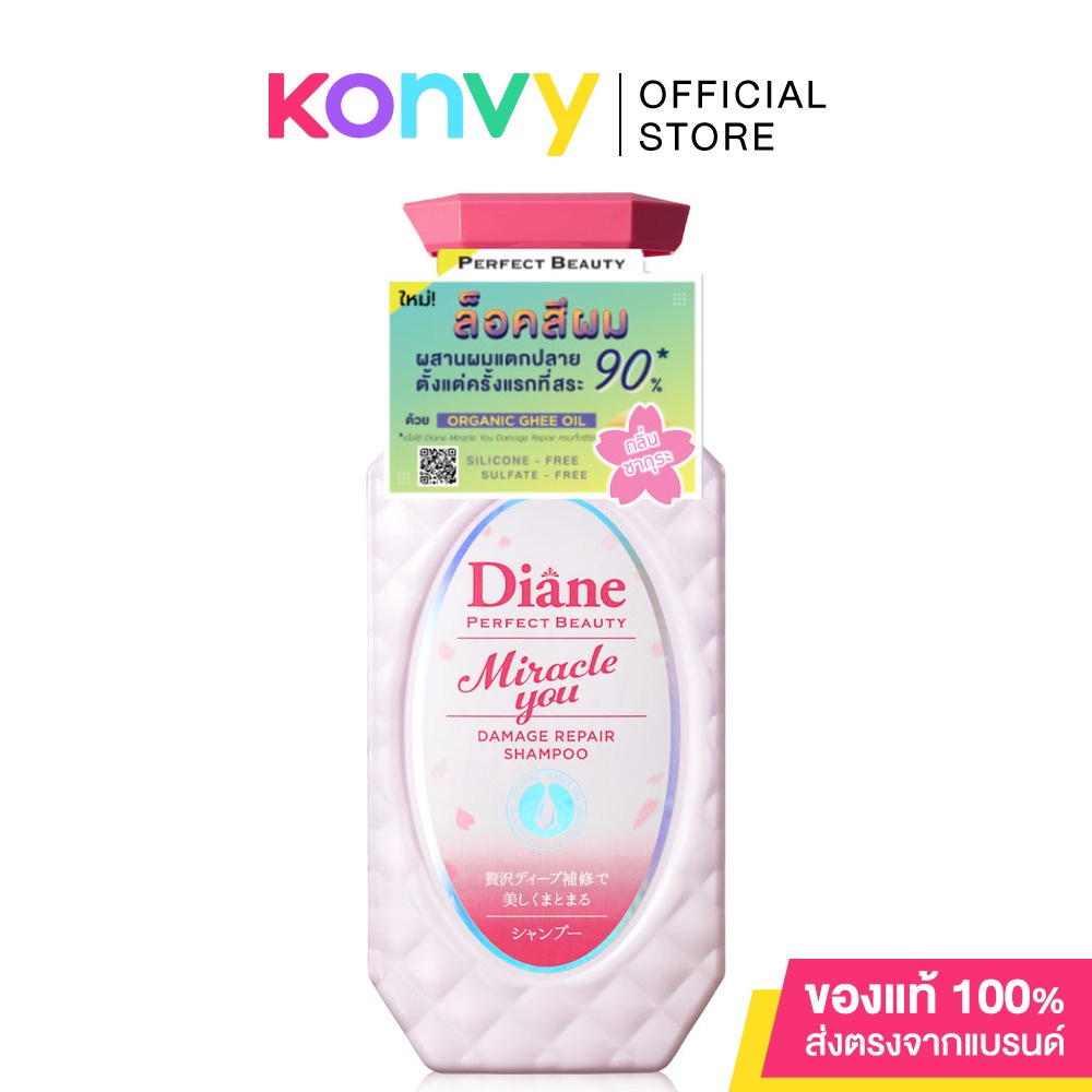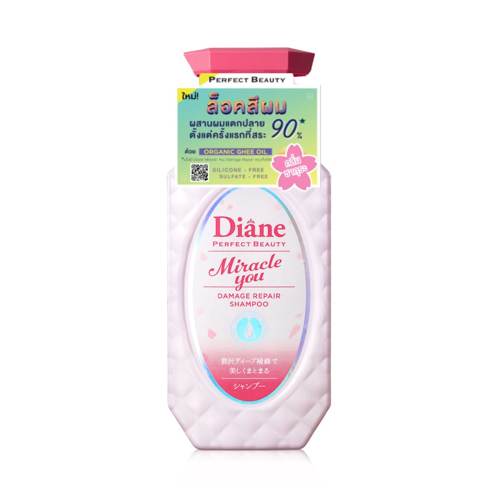 Moist Diane Miracle You Sakura Shampoo 450ml แชมพูสระผม สูตรพิเศษเพื่อผมทำสีโดยเฉพาะ ที่สุดของความกลิ่นหอมจากดอกซากุระ, Gardenia Rose และวานิลา ที่จะทำให้คุณได้ฟินราวกับยืนอยู่ท่ามกลางต้นซากุระ และด้วยส่วนผสมของกากสาเกที่หมักด้วยดอกซากุระ ช่วยล็อคสีผมสวยยาวนาน พร้อมมอบความชุ่มชื้นให้เส้นผม และดูแลหนังศีรษะ ให้เส้นผมของคุณนุ่มสวย เป็นประกายเงางาม