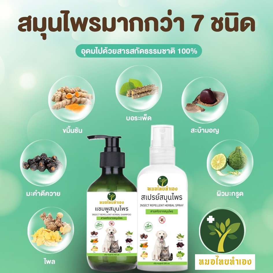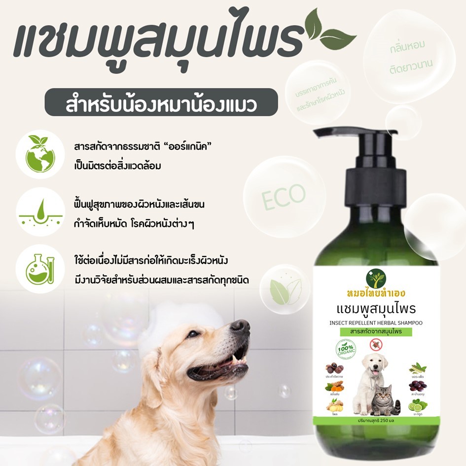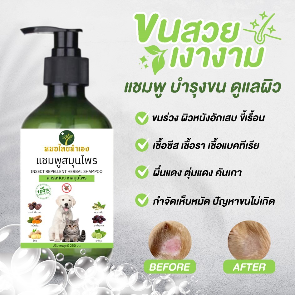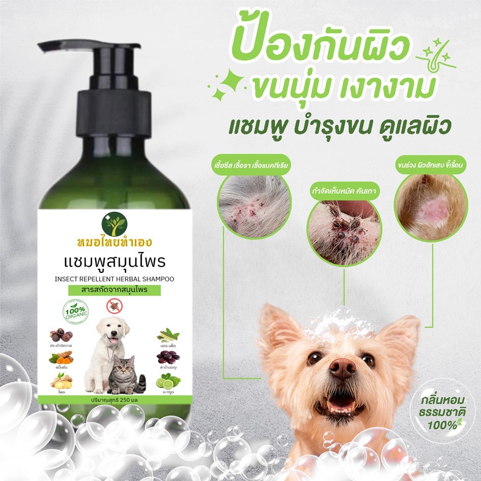 (หมอไทยทำเอง) เเชมพูสมุนไพร ไล่ ป้องกันเห็บหมัด บรรเทาโรคผิวหนังขี้เรื้อน เชื้อรา คัน เกา ผื่นเเดง ขนร่วง