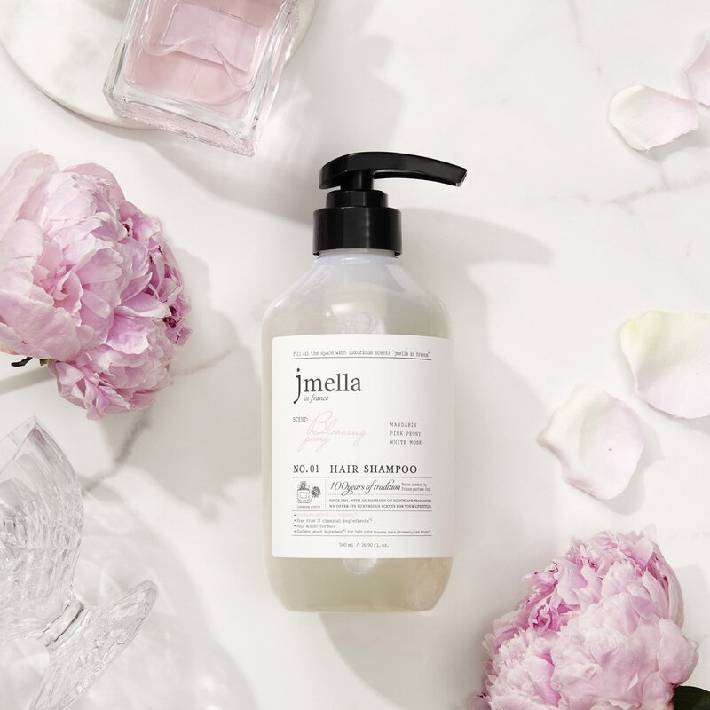 Cr.jmella.comJmella In France Blooming Peony Hair Shampoo 500mlแชมพูกลิ่นบลูมมิ่ง พีโอนี กลิ่นหอมหมู่มวลดอกไม้ที่เต็มไปด้วยเสน่ห์ของกลิ่นซิตรัส ที่เปรี้ยวซ่าเปล่งประกายราวกับกำลังใส่ชุดเดรสปักลายกลีบดอกไม้เป็นพันๆ กลีบ