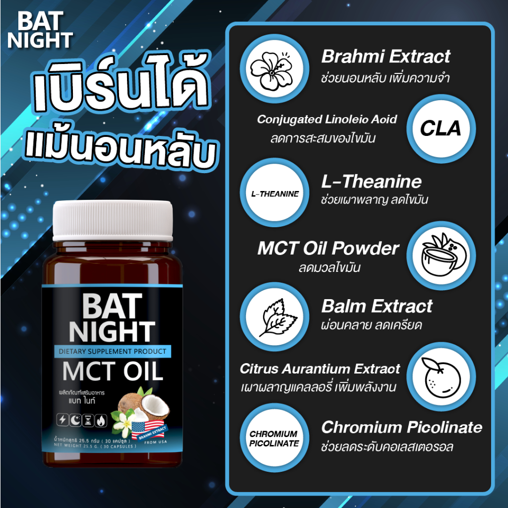 สารสกัดพรีเมี่ยม สารสำคัญใน BAT NIGHT MCT oil นำเข้าจาก USA เหมาะสำหรับผู้ที่ต้องการการลดน้ำหนัก ไม่มีเวลาออกกำลังกาย
