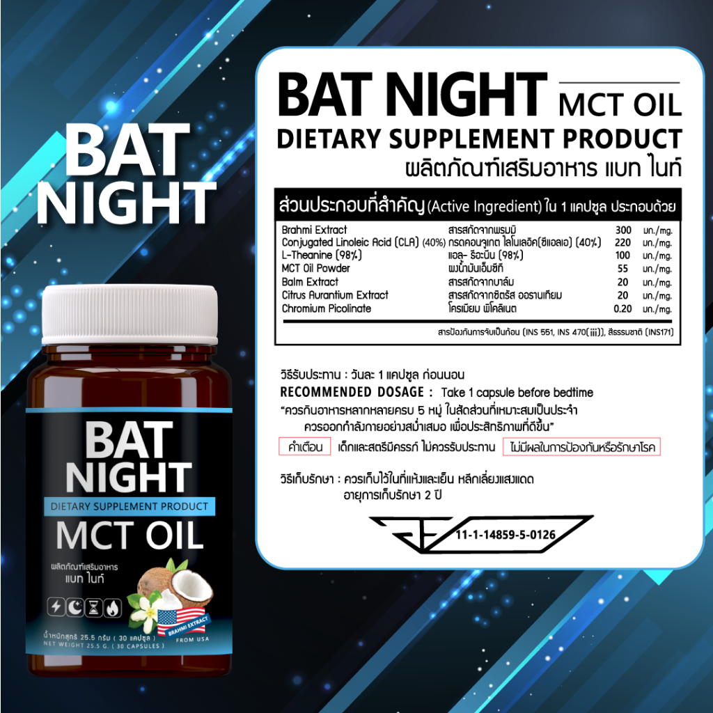 #BATNIGHT หลับสนิท เบิร์นไขมัน เผาพลาญระหว่างนอนหลับBAT NIGHT (DIETARY SUPPLEMENT PRODUCT)