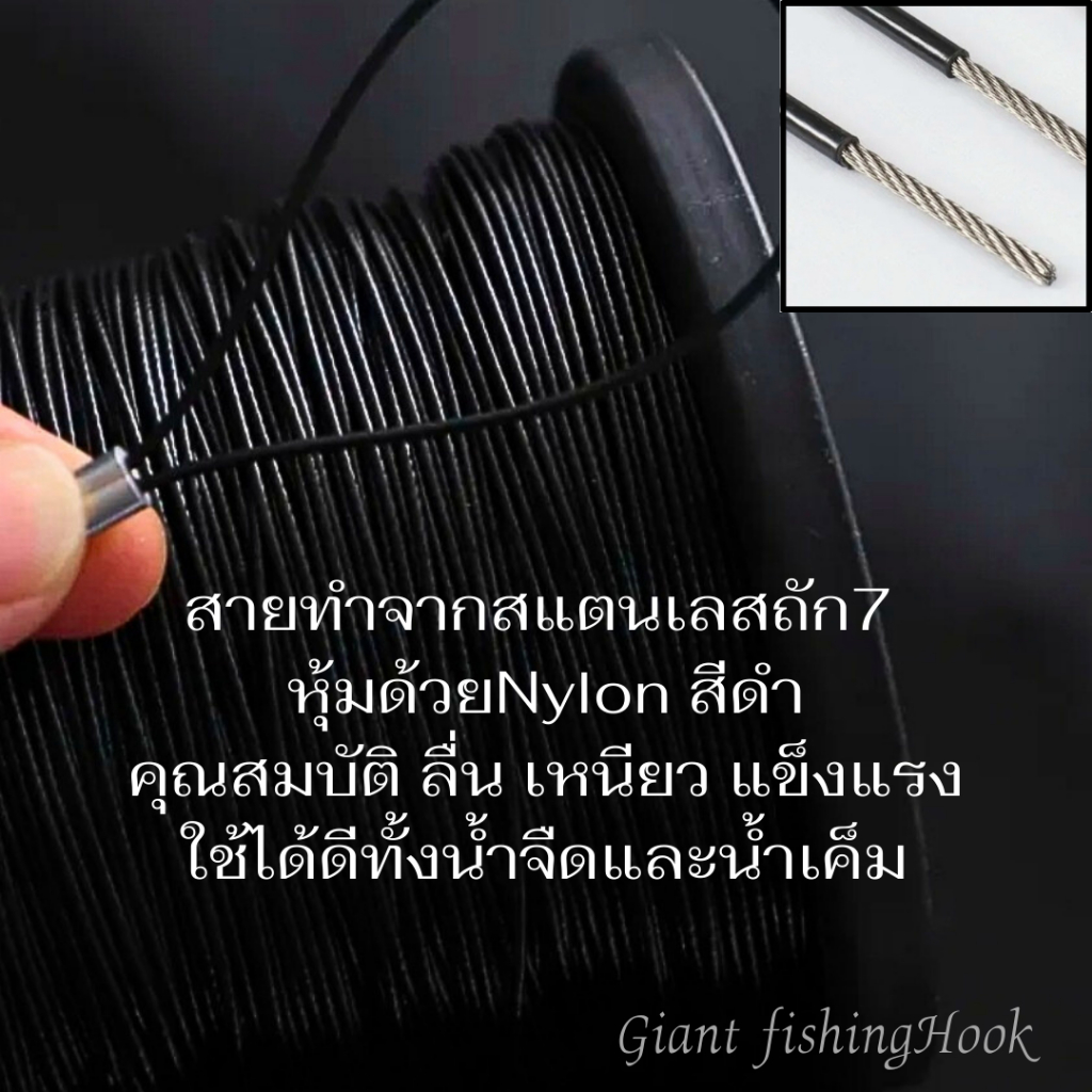 สายเป็นสแตนเลสถัก7 เคลือบNylonสีดำ มีคุณสมบัติลื่น