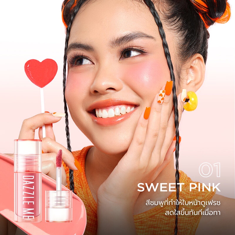 Dazzle Me Heart-Melt Creamy Liquid Blush 2.5g #01 Sweet Pink บลัชเนื้อครีมสัมผัสนุ่มลื่น เกลี่ยง่าย ไม่เป็นคราบ สีสวยละมุนเป็นธรรมชาติ เสกพวงแก้มให้ดูสวยระเรื่อสดใสอย่างเป็นธรรมชาติ•เนื้อสัมผัสแบบครีม: เนื้อครีมบางเบาดุจละอองน้ำ แตะเพียงนิดเดียวก็สามารถเกลี่ยได้ทั่วบริเวณที่ต้องการ มอบลุคการแต่งหน้าที่ดูบางเบาเป็นธรรมชาติ
